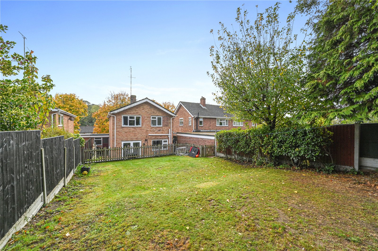 On the first floor, there are three bedrooms arranged off the landing. The main bedroom is notably spacious, with dual windows overlooking mature trees to the front. A second double bedroom enjoys a rear aspect, while the third bedroom is a bright and cosy single - ideal as a nursery, guest room or home office. The family bathroom has been stylishly updated with tiled walls, patterned flooring, a full-length bath, and chrome towel rail.