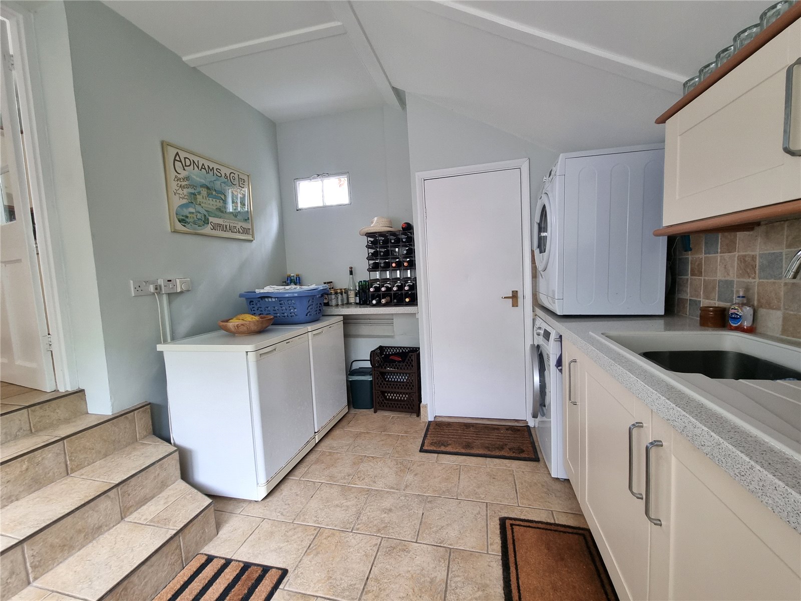 The kitchen is well-proportioned and thoughtfully designed with modern units and appliances. Just a few steps down, the utility/boot room gives access to the rear garden and provides plenty of storage, cupboards, sink and space for appliances.