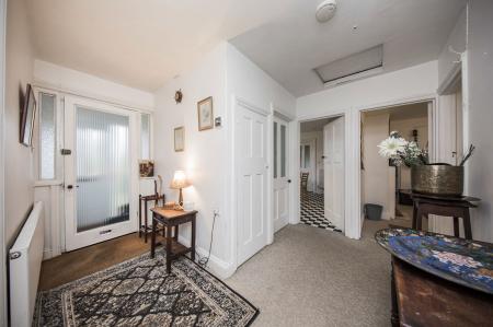Hallway: Timber effect flooring. Radiator.