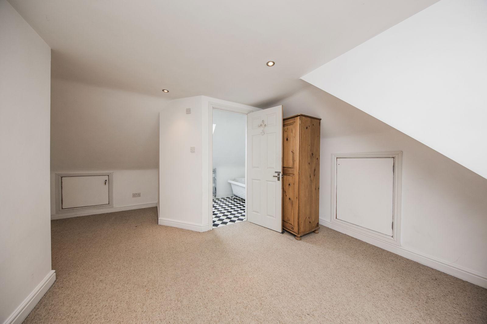 BEDROOM ONE: uPVC double glazed window to rear. Access to eaves storage space. Recessed ceiling downlighters. Radiator. Door to:
