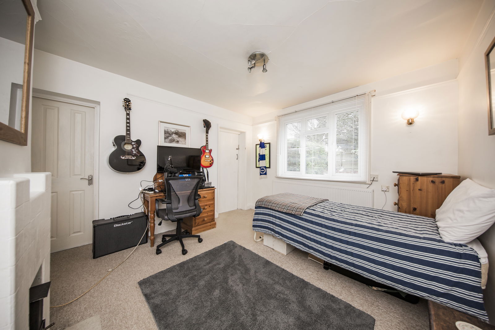 GROUND FLOOR BEDROOM ONE: uPVC double glazed window to rear. Attractive feature former fireplace with tile surround. Picture rail. Radiator. Door to: