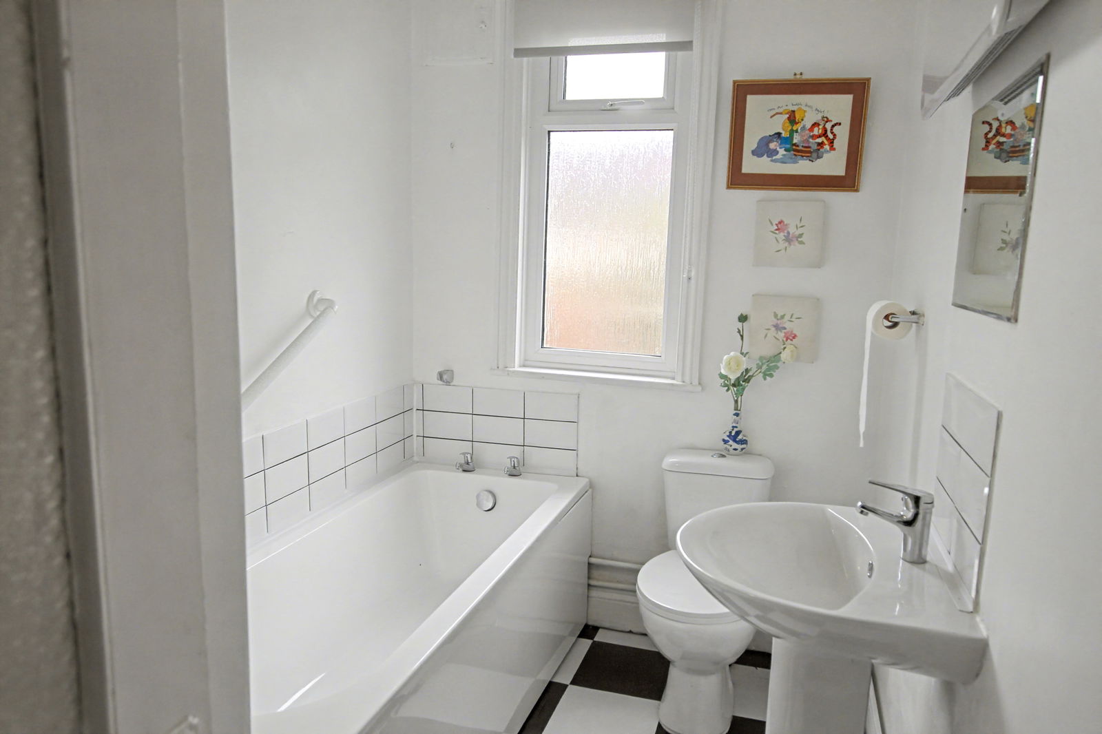BATHROOM: Double glazed window to front. White suite comprising WC, wash basin and panel enclosed bath.