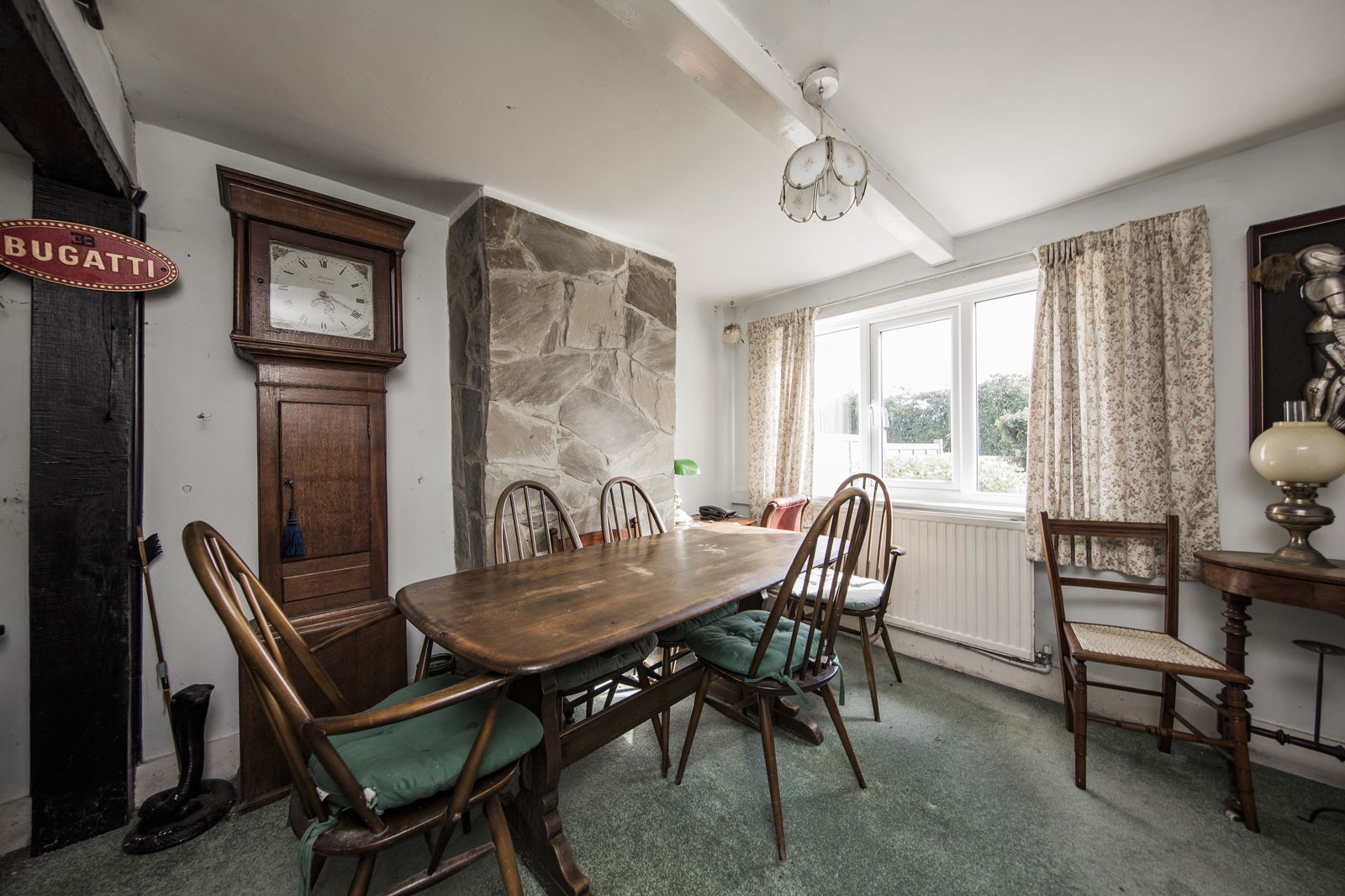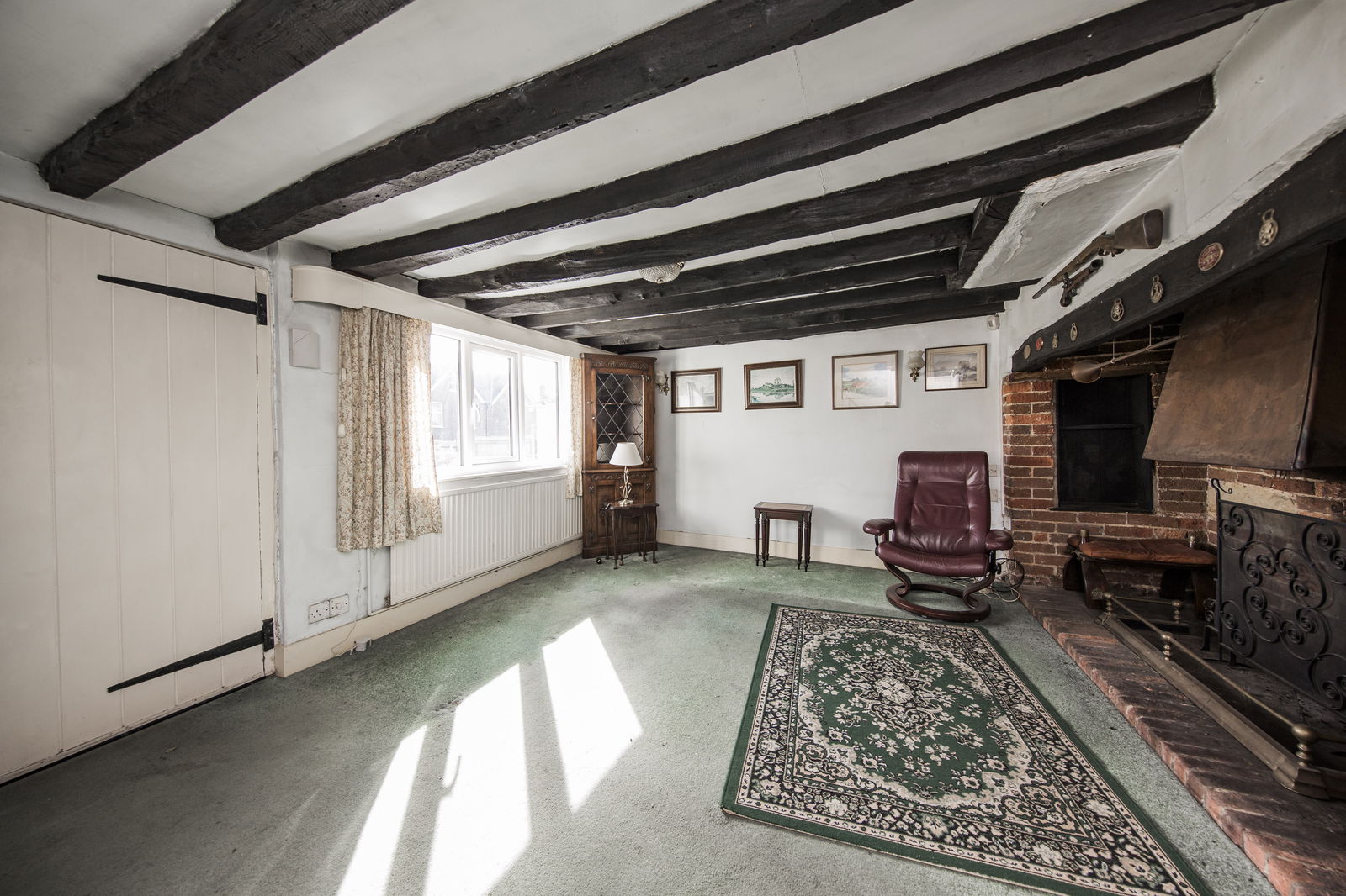 SITTING ROOM: Double glazed window to the front. Beamed ceiling. Large feature Inglenook fireplace. Radiator.