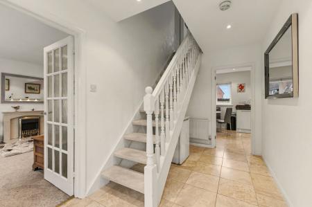 Upon entering, you are welcomed by a spacious entrance hall with open staircase. Off the entrance hall there is a generously sized light and airy dual aspect lounge. The well-proportioned kitchen dining room provides ample space with a range of wall and base units with spot light feature. Adjacent to the kitchen, a separate utility room (with a practical porch leading to the garden) offers additional storage and laundry facilities.