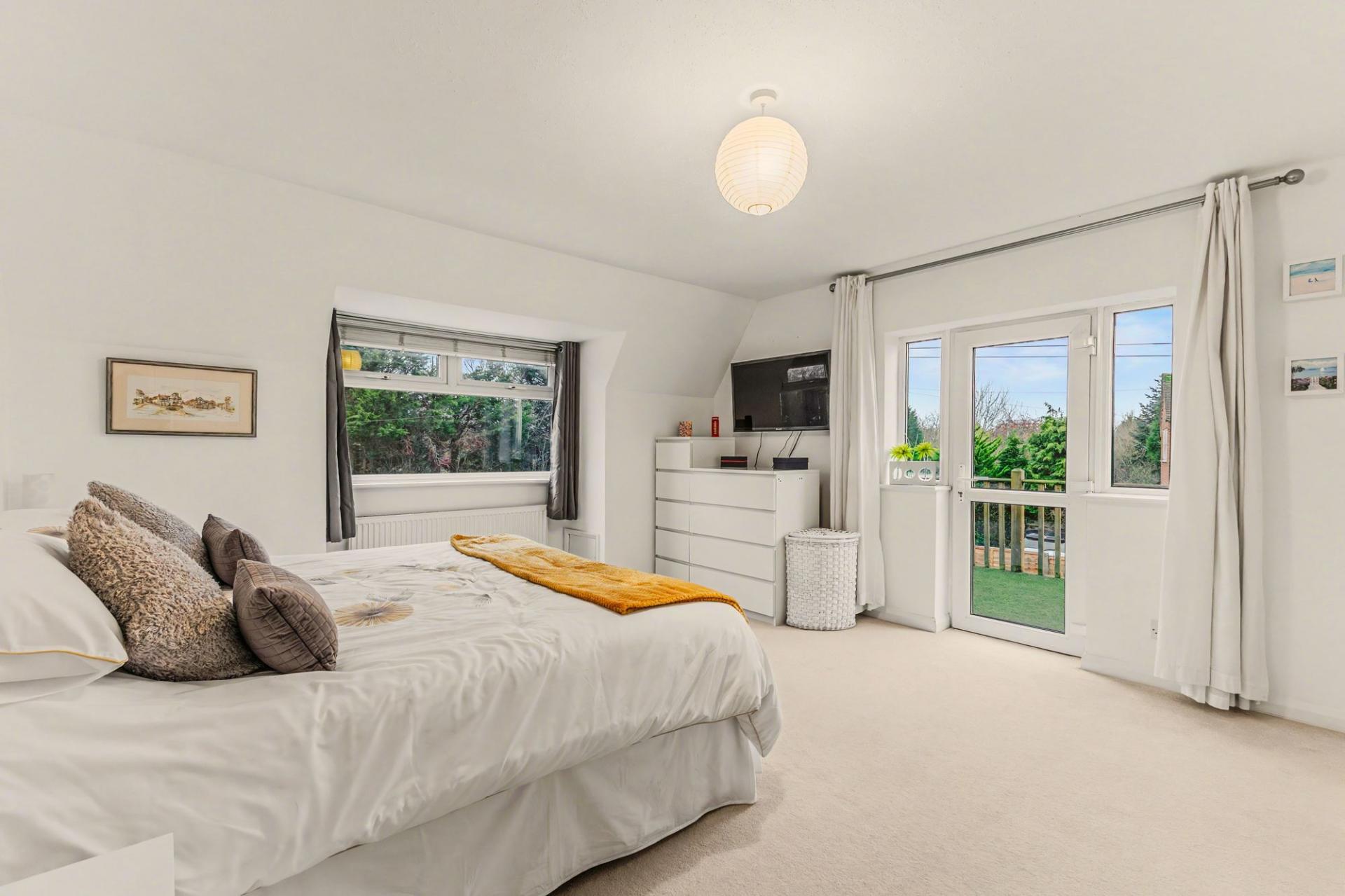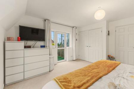 The main bedroom benefits from a walk-in dressing room and en-suite, while bedroom two benefits from a fitted wardrobes and balcony which is located on the first floor. Bedroom three is located on the ground floor which holds a storage cupboard, and en-suite.