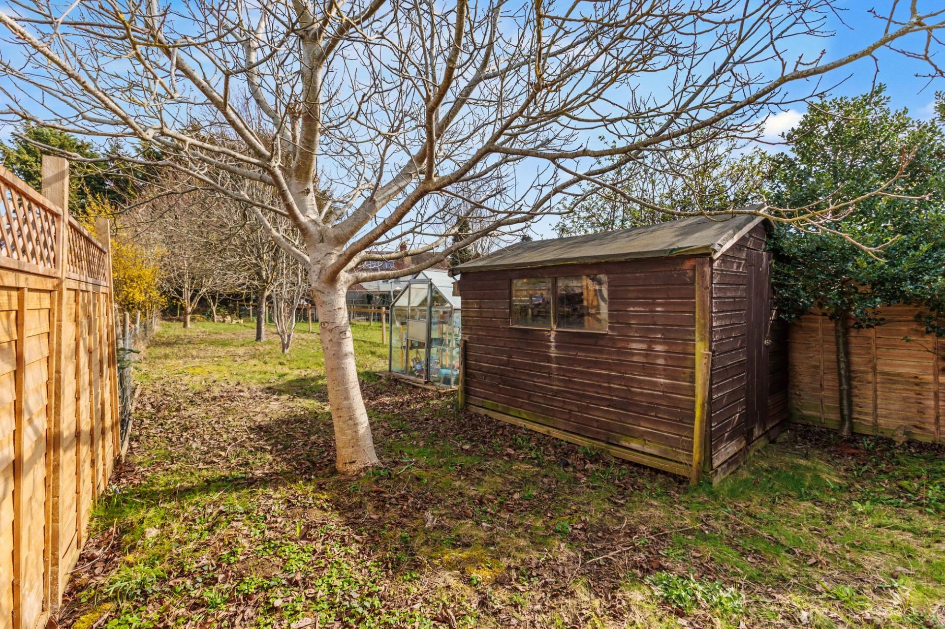 - REAR GARDEN WITH LAWN, SHED AND ORCHARD