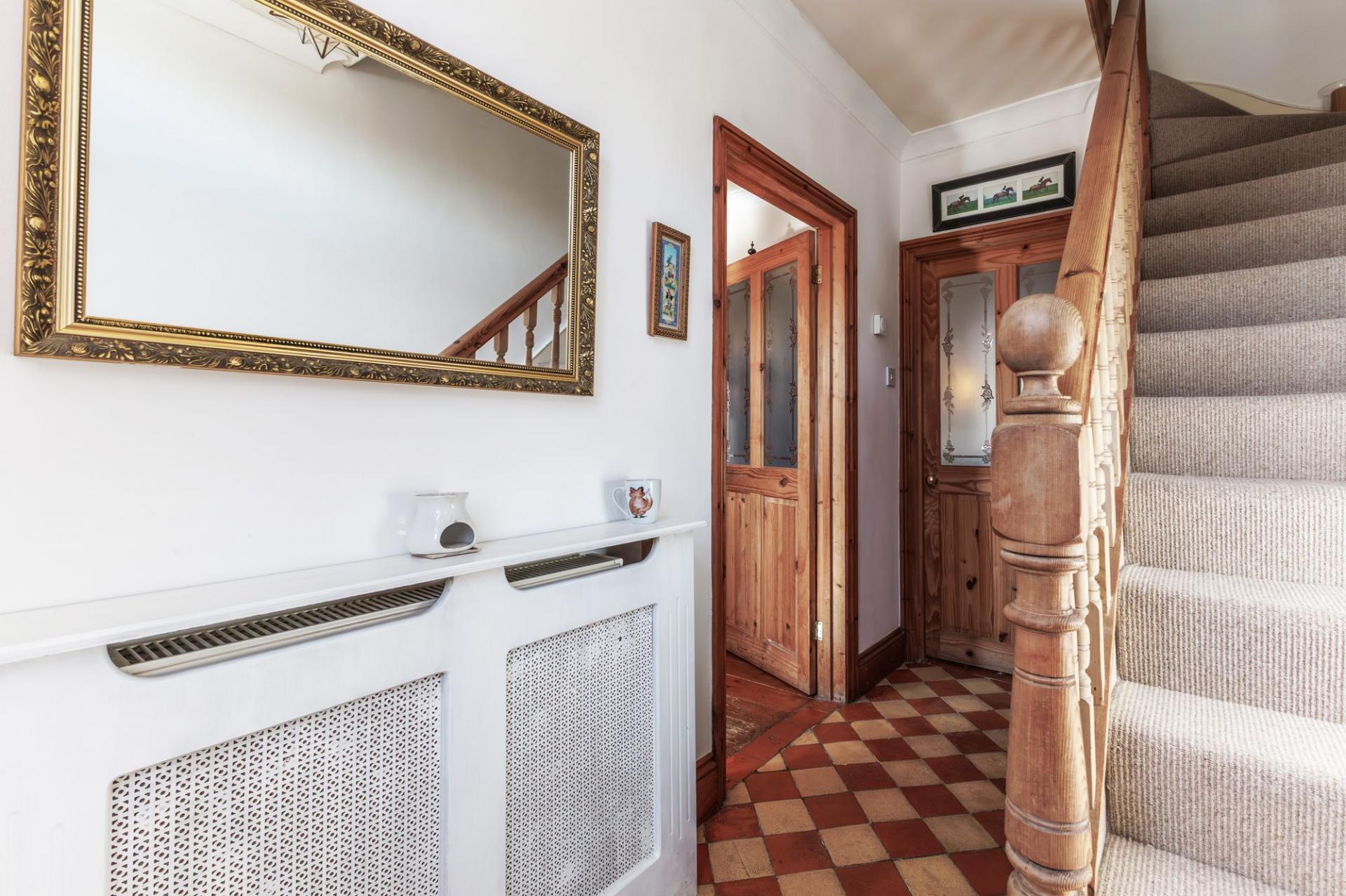 Upon entering, you are welcomed into the entrance hall, providing access to all principal ground floor rooms and stairs rising to the first floor.