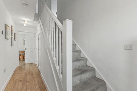 The property opens into a welcoming hallway, leading to a light and airy lounge. The well-appointed modern kitchen / dining room provides ample space, with integrated appliances, while a separate utility room adds convenience and extra storage. The house features a WC as an added benefit.