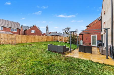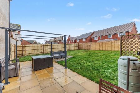 Outside, the property offers driveway parking for two vehicles, a single garage with lighting, power, and additional storage, and a beautifully landscaped garden that has recently been extended with new fencing, which is mainly laid to lawn with a patio area, an aluminium pergola, a mixture of shrubs and bushes, door access to the garage, and side access to the front of the property. At the front, is a spacious green area - included in the sale - providing a welcoming approach to the home.