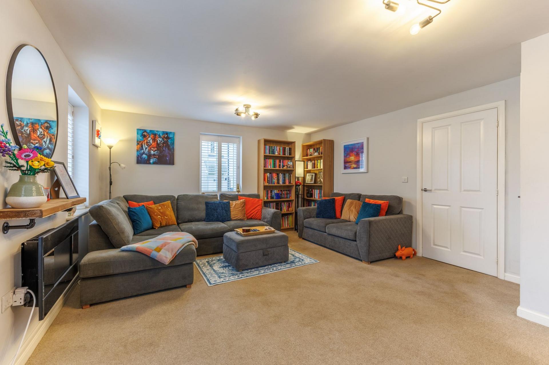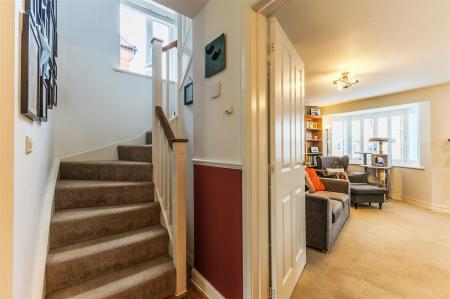 Upstairs, a spacious landing with loft access, built-in storage, and a well-positioned window allows for plenty of natural light. There are four generously sized bedrooms and a stylish family bathroom. The primary bedroom benefits from fitted wardrobes and a private en-suite shower room.