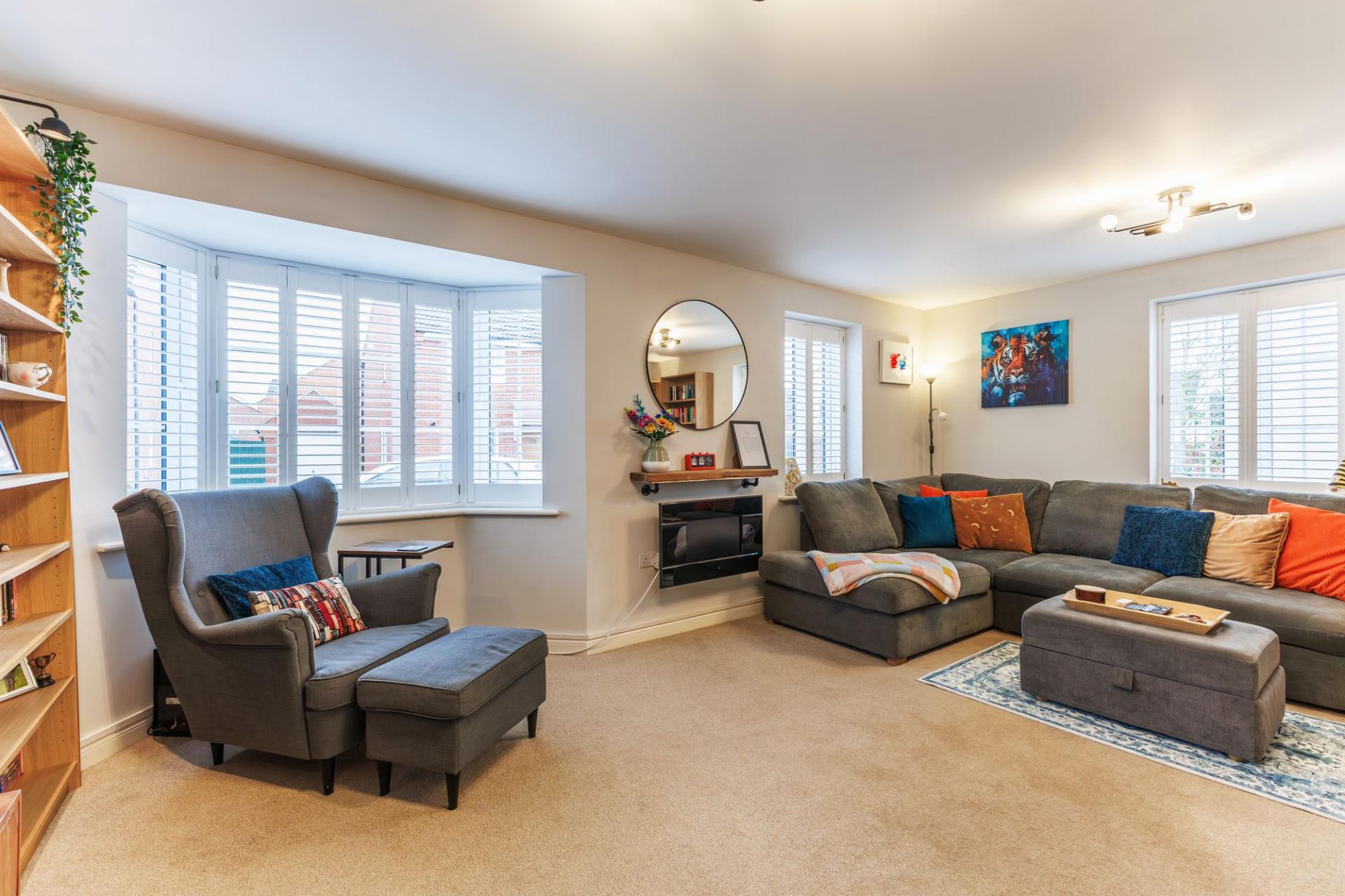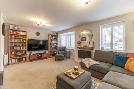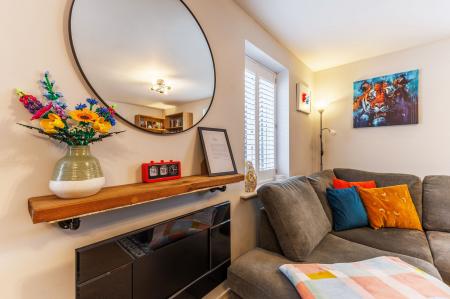 Upon entering, the hallway provides access to all ground-floor rooms, including a convenient WC, and stairs leading to the first floor. The living room is bright and airy, benefiting from multiple aspects, a feature bay window, and useful under-stairs storage. There is an open-plan kitchen and dining area, perfect for both entertaining and everyday family life. The kitchen is well-appointed with contemporary wall and base units, integrated appliances, and double doors that open out onto the rear garden.