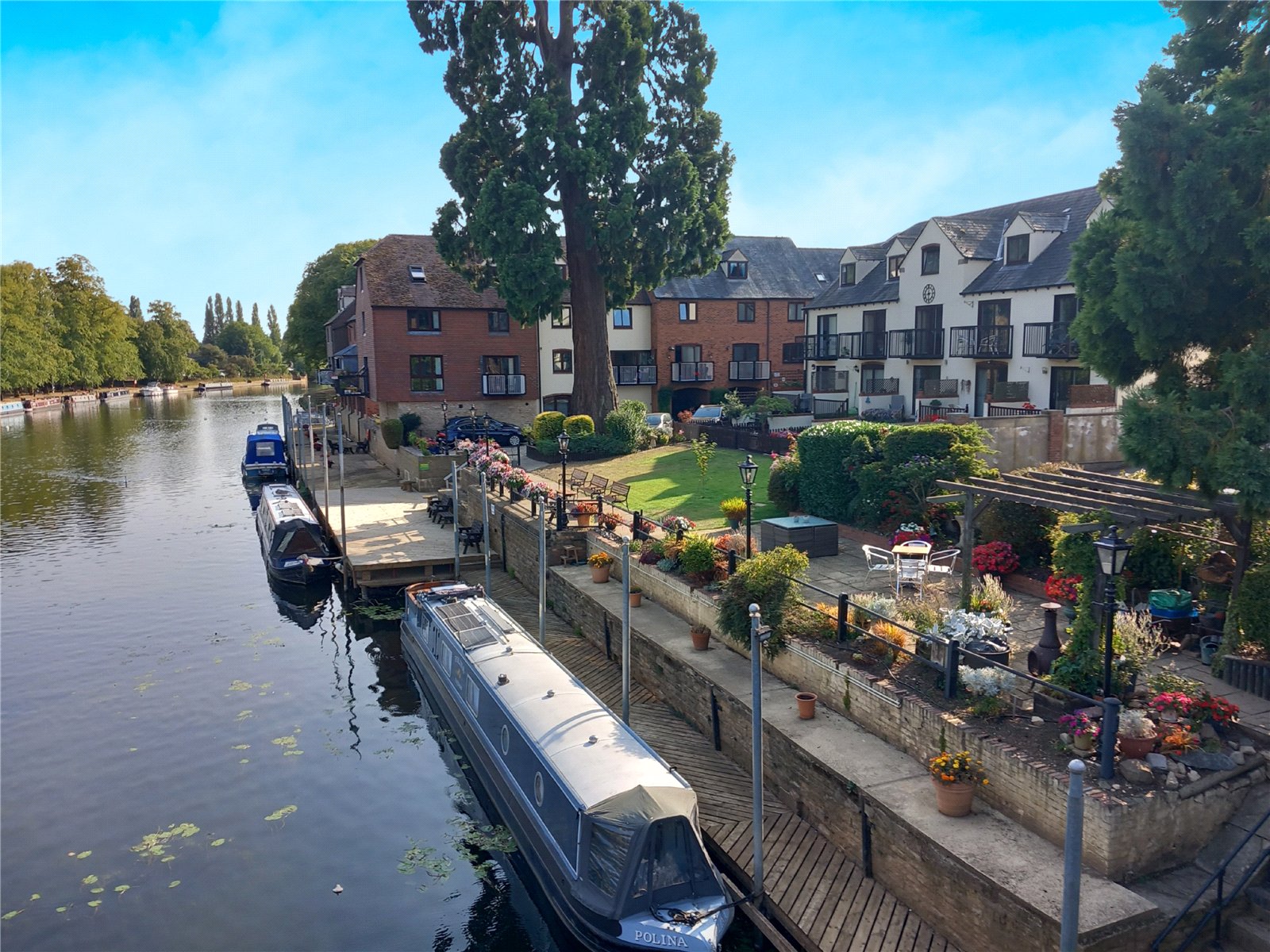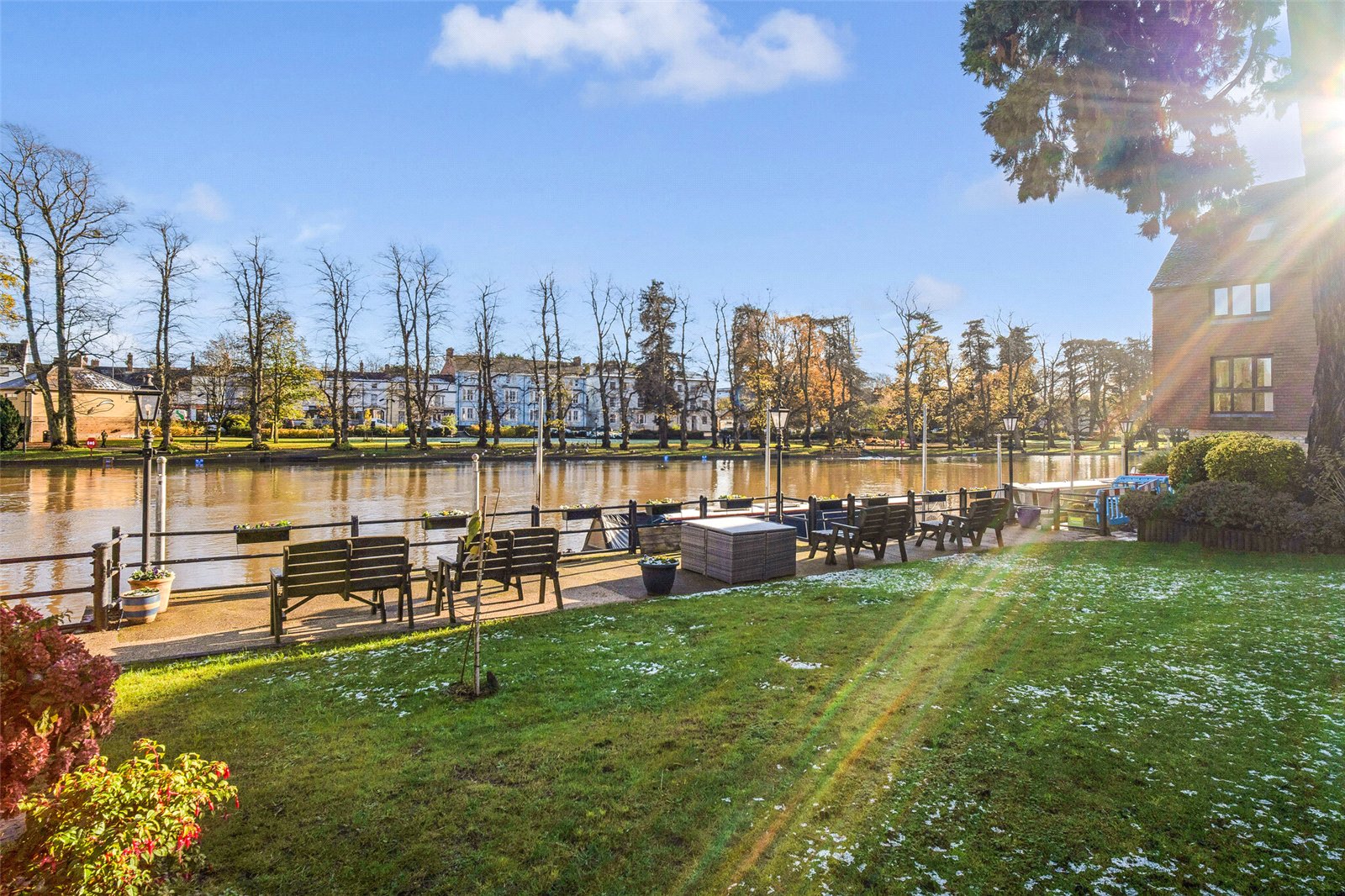 25 Monks Walk is nestled in a gated riverside development of 32 properties, offering easy access to the park and High Street. The beautifully presented communal gardens are mainly laid to lawn with several seating areas overlooking the picturesque river. The property additionally benefits from a tandem garage with additional visitor parking available on a first come first served basis.