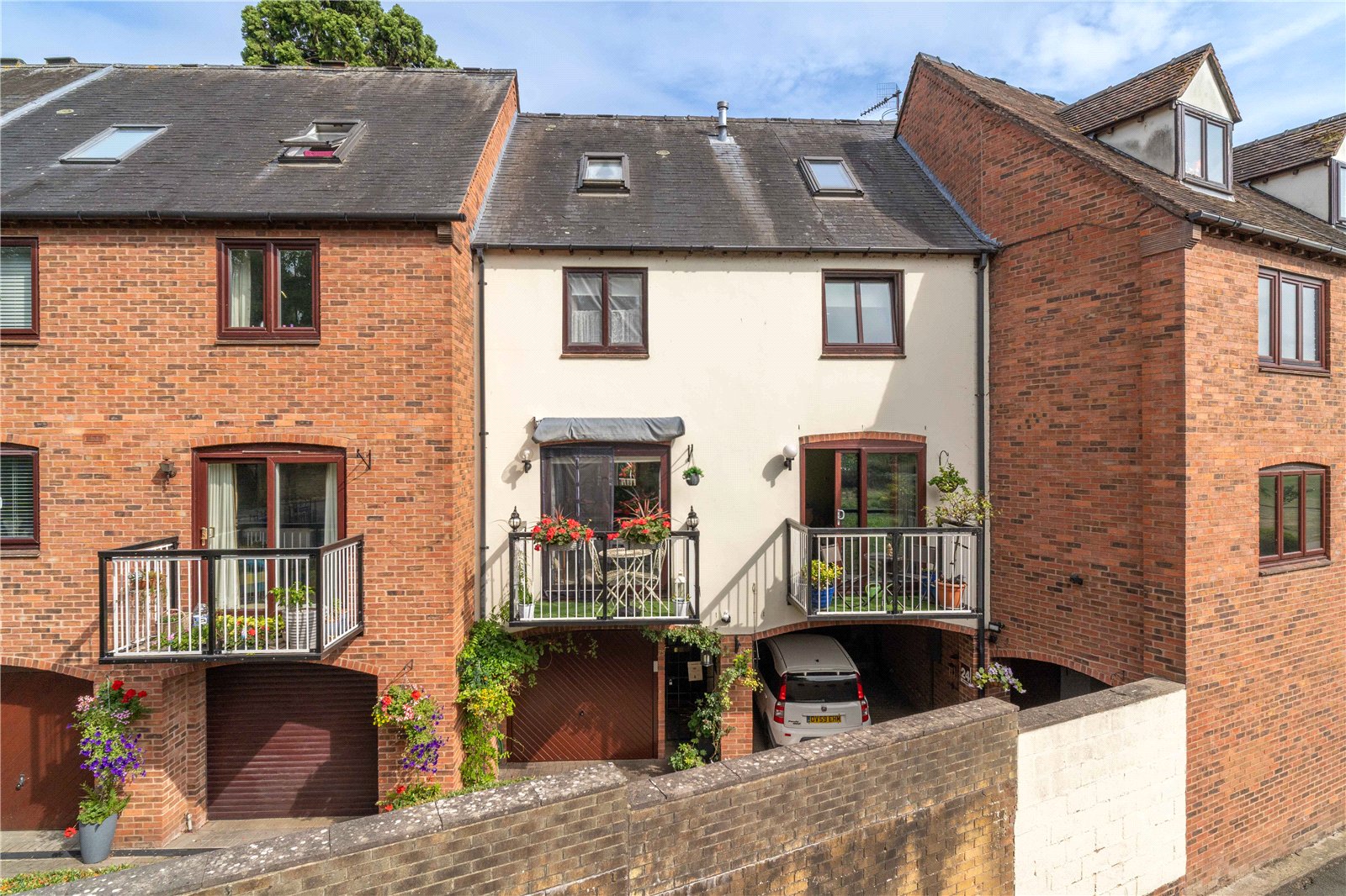 25 Monks Walk is a well presented 2 bedroom town house, located in the heart of this riverside market town. As you enter the property, stairs rise from the entrance hall to the first floor, which briefly comprises a kitchen with a range of base and wall units, and integrated appliances to include a gas hob, an oven, a fridge freezer, a dishwasher and plumbing for a washing machine, and a light sitting/dining room with a decorative fireplace and sliding doors leading out on to a private balcony. The spacious family bathroom is located on the second floor along with a good sized double bedroom and a generous landing benefitting from built in wardrobes. The principal bedroom is located on the third floor and benefits from an ensuite shower room and a large storage cupboard with additional storage available in the eaves.