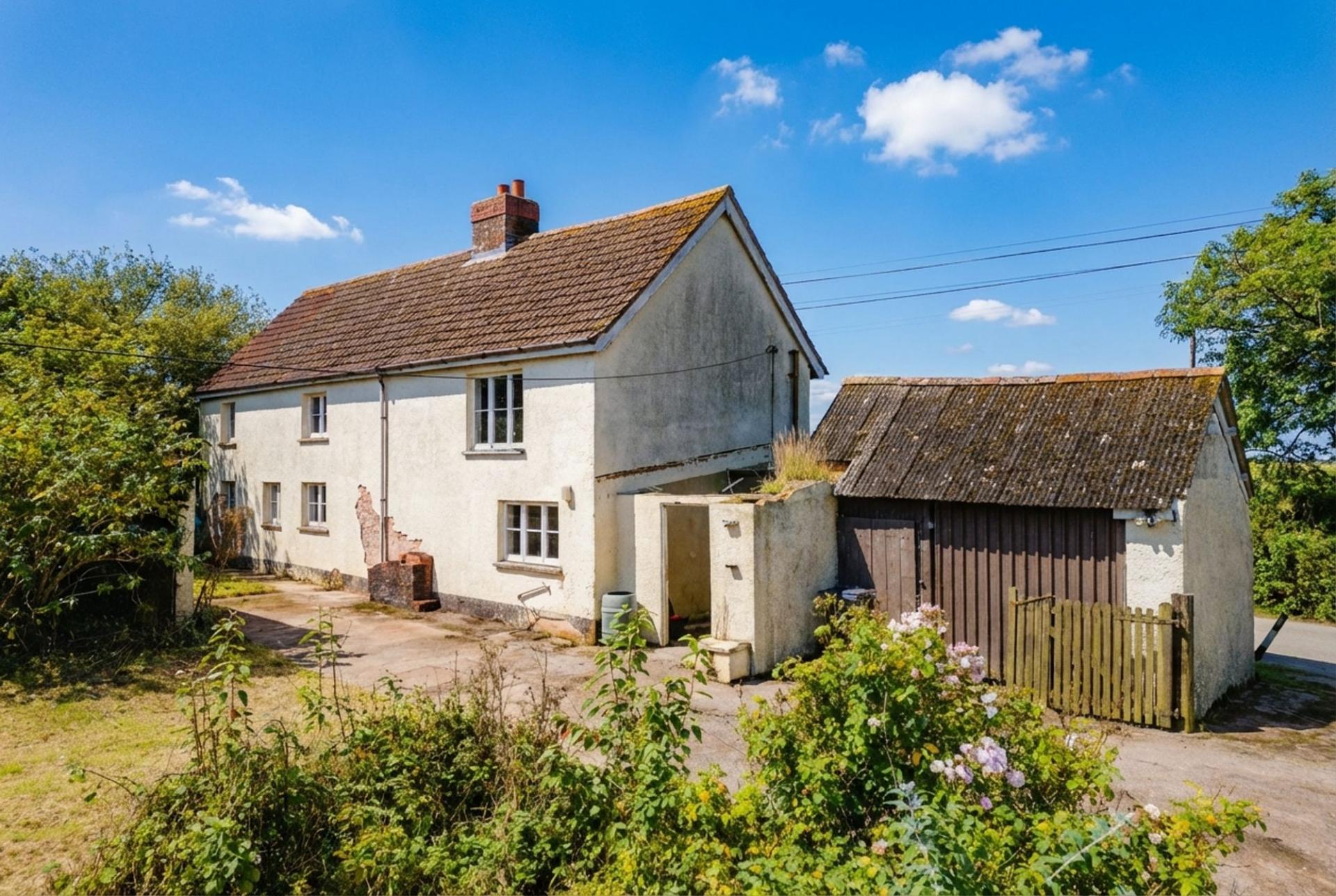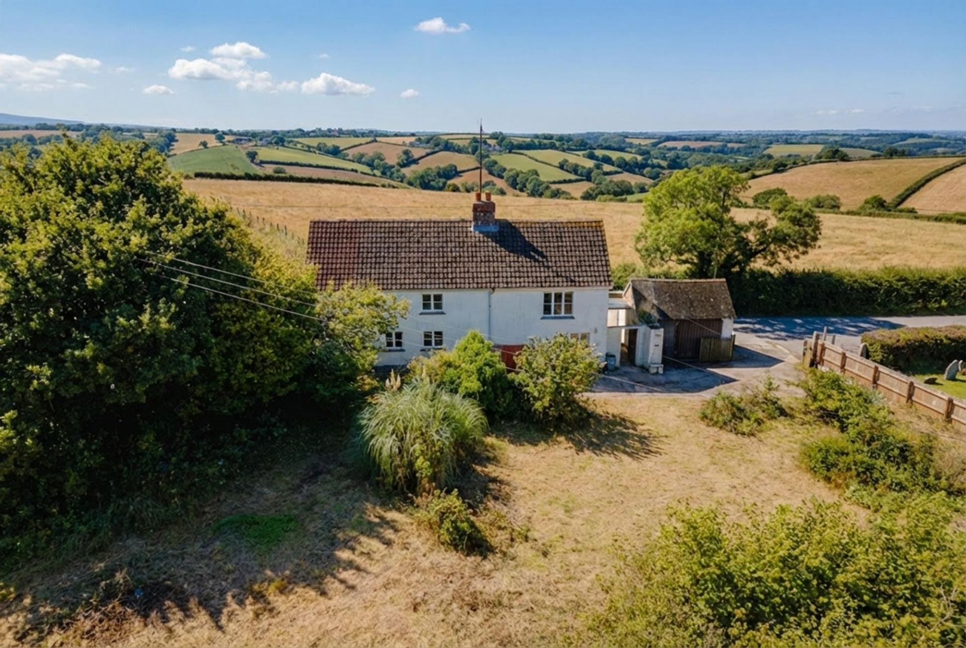 The cottage itself is located just outside of Cheriton Bishop. It is in need of complete renovation and the current owners have begun the strip out. Please note that some floors and internal walls have been removed already, this is not a live in project! The property will require some additional structural work but would make a fantastic home once completed. To be in this location and have a newly renovated home would be something pretty special. So for those not wanting to go the whole way and build a new home (there is planning to do so!) then a submission to Mid Devon District Council could be made to enlarge/alter the existing house and still create a wonderful home. The plot extends to approx. 0.50 acres with some fantastic fruit trees towards the back of the plot.