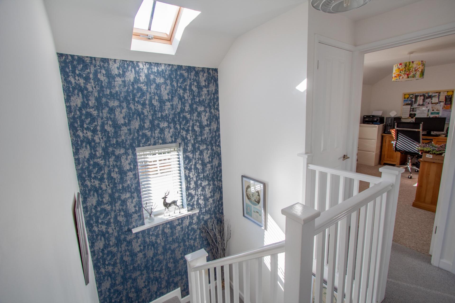 Upstairs, the large master bedroom benefits from a stylish en-suite shower room, complemented by two further well-proportioned double bedrooms and a modern family bathroom.