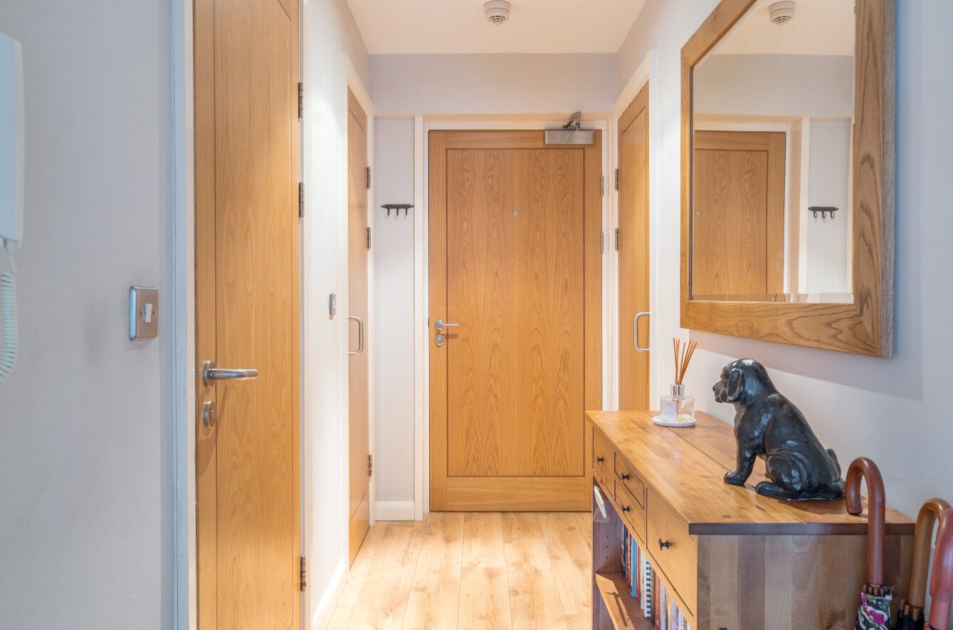 Accessed via a secure communal entrance with lift, the first-floor property benefits from gas central heating, double glazing, and an entry phone security system.