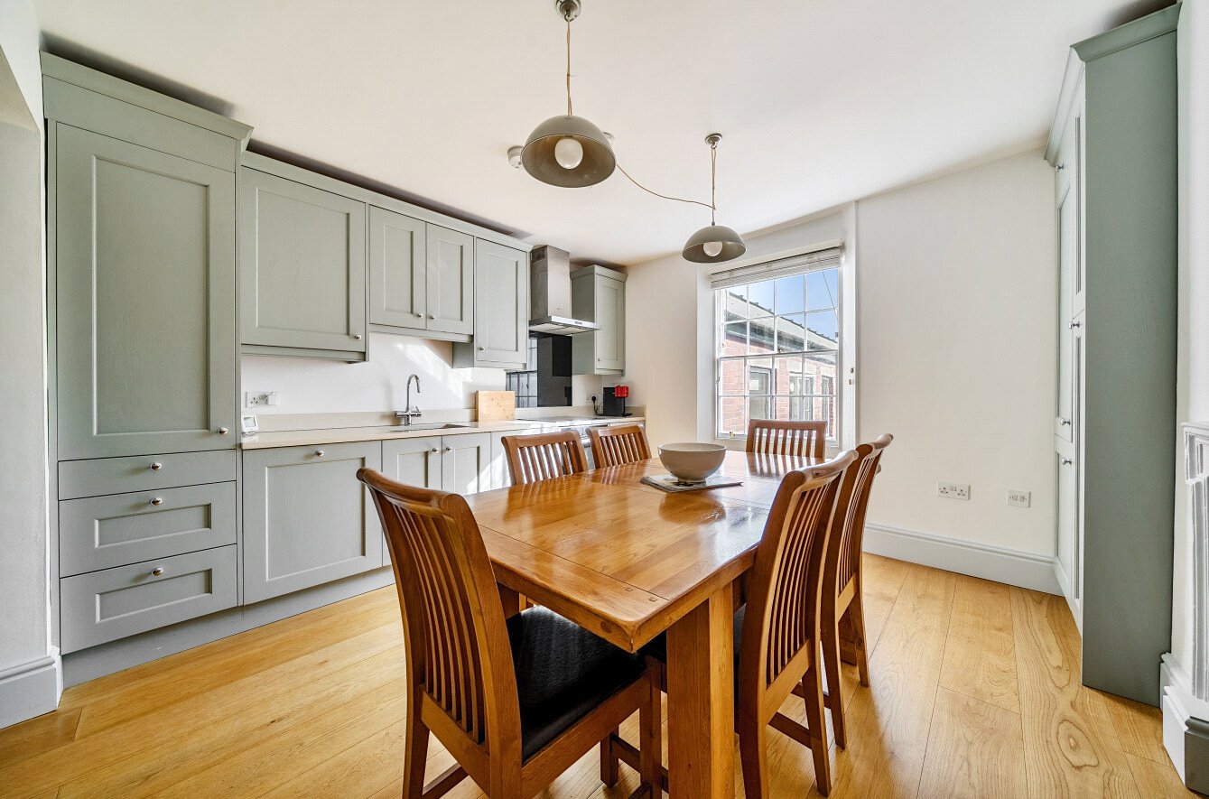 This stylish three bedroom apartment occupies the first and second levels of a handsome period townhouse in the heart of Exeter. The property presents comfortable, airy living space with high-quality contemporary fittings.