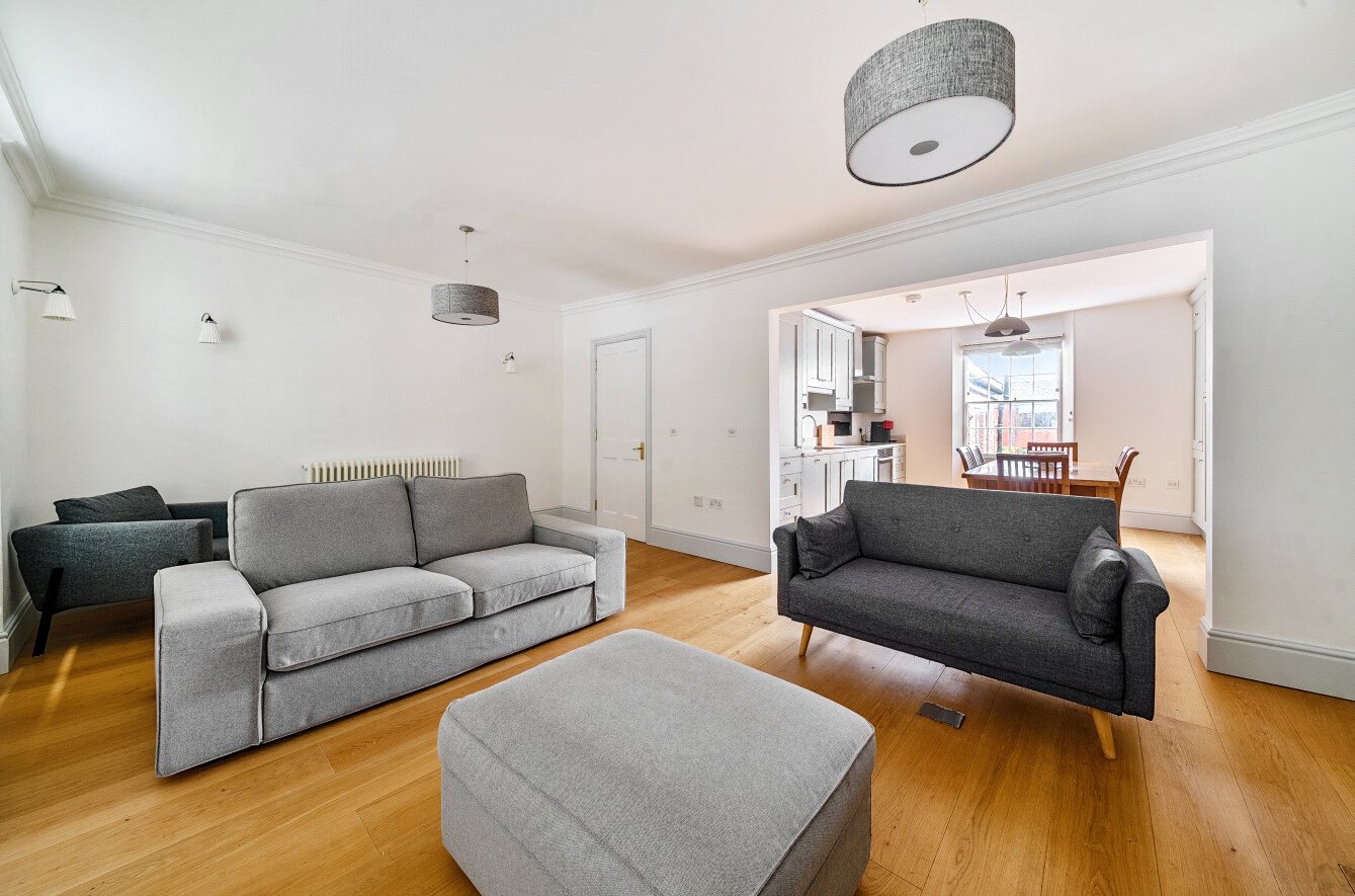 The main reception room is the first floor sitting room, which features wooden flooring and an ornate fireplace, and welcomes plenty of natural light through two large sash windows. The first floor also has a well-proportioned kitchen and dining room, which adjoins the sitting room in a semi open-plan layout and features shaker-style units to base and wall level, as well as integrated appliances.