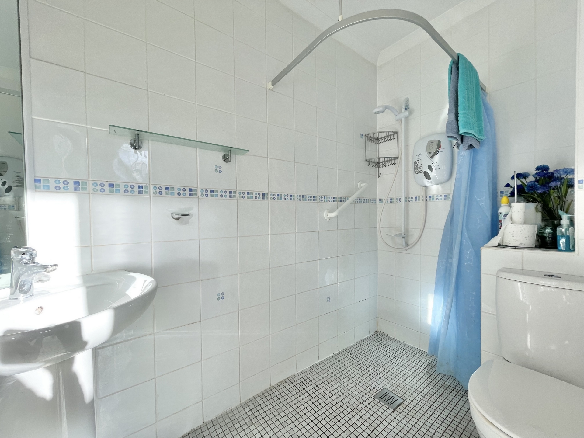 WET ROOM: Close coupled WC, wash hand basin, wall mounted electric shower.
