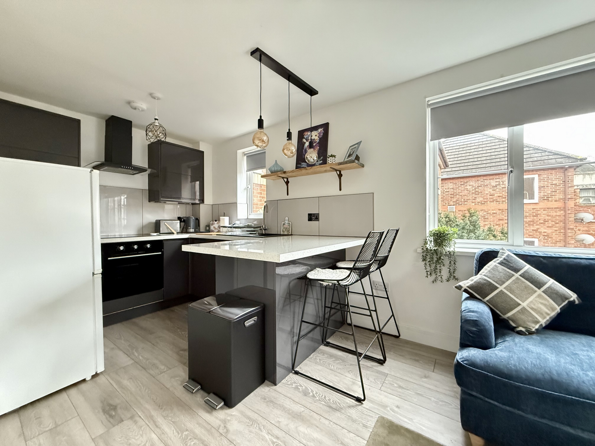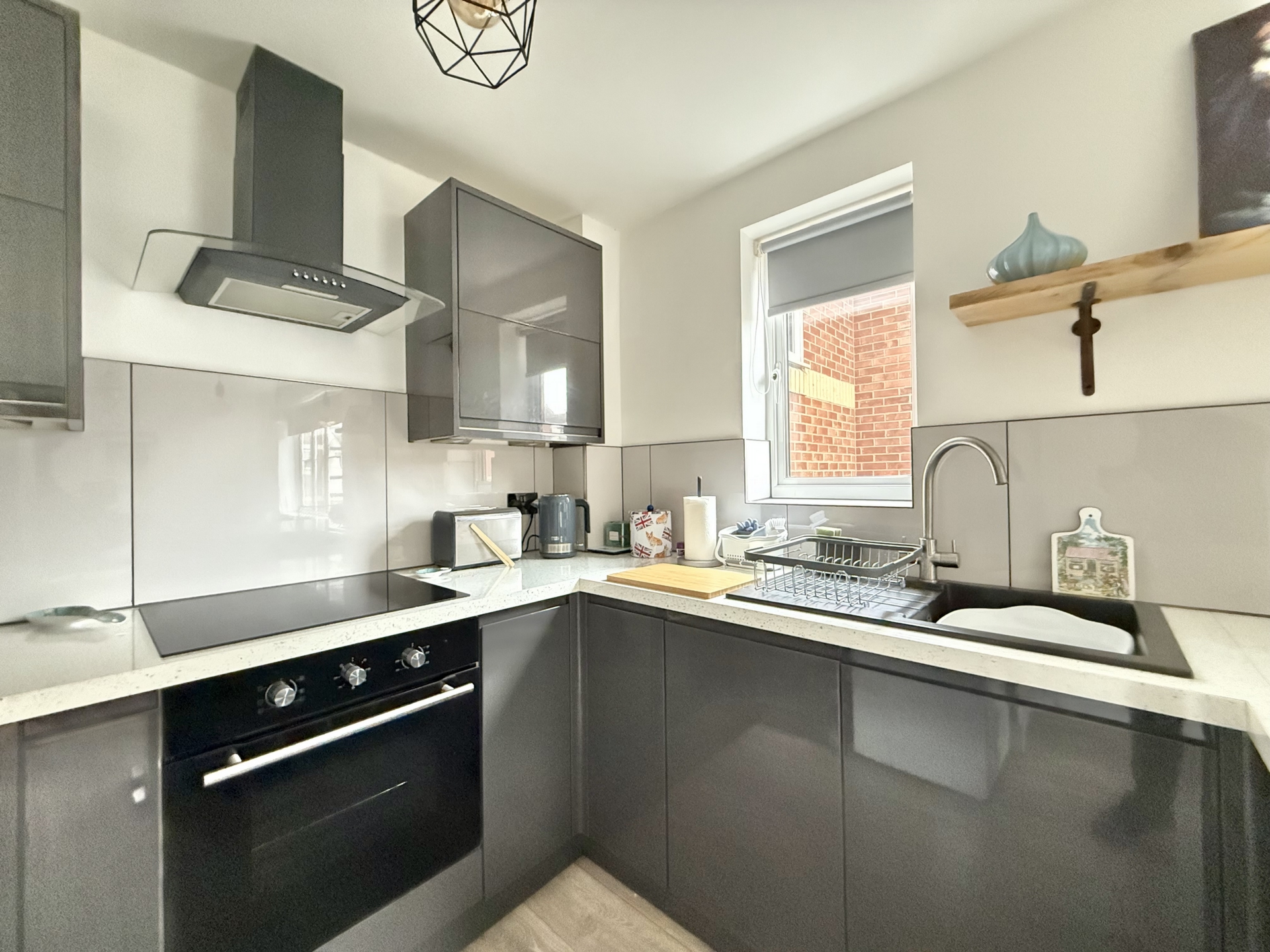 LIVING ROOM/KITCHEN: 6.3m x 3.4m (20'8" x 11'2"), Double glazed windows to the front of the block, electric heater. Modern fitted kitchen comprising base cupboards and drawers with worktop over, sink and drainer, built in oven with hob and hood over, wall mounted cupboards, built in slimline dishwasher, space for frideg freezer.