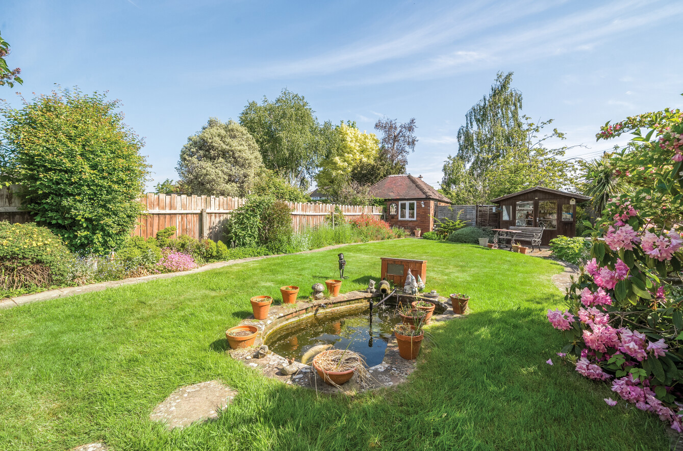 The adjoining dining room offers a modern inset gas fire and opens seamlessly into a bright conservatory, where full-height glazing frames wonderful views of the beautifully landscaped gardens ideal for year-round enjoyment and entertaining.