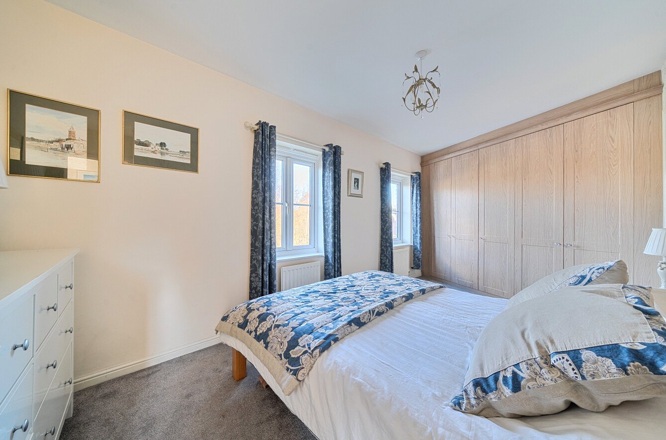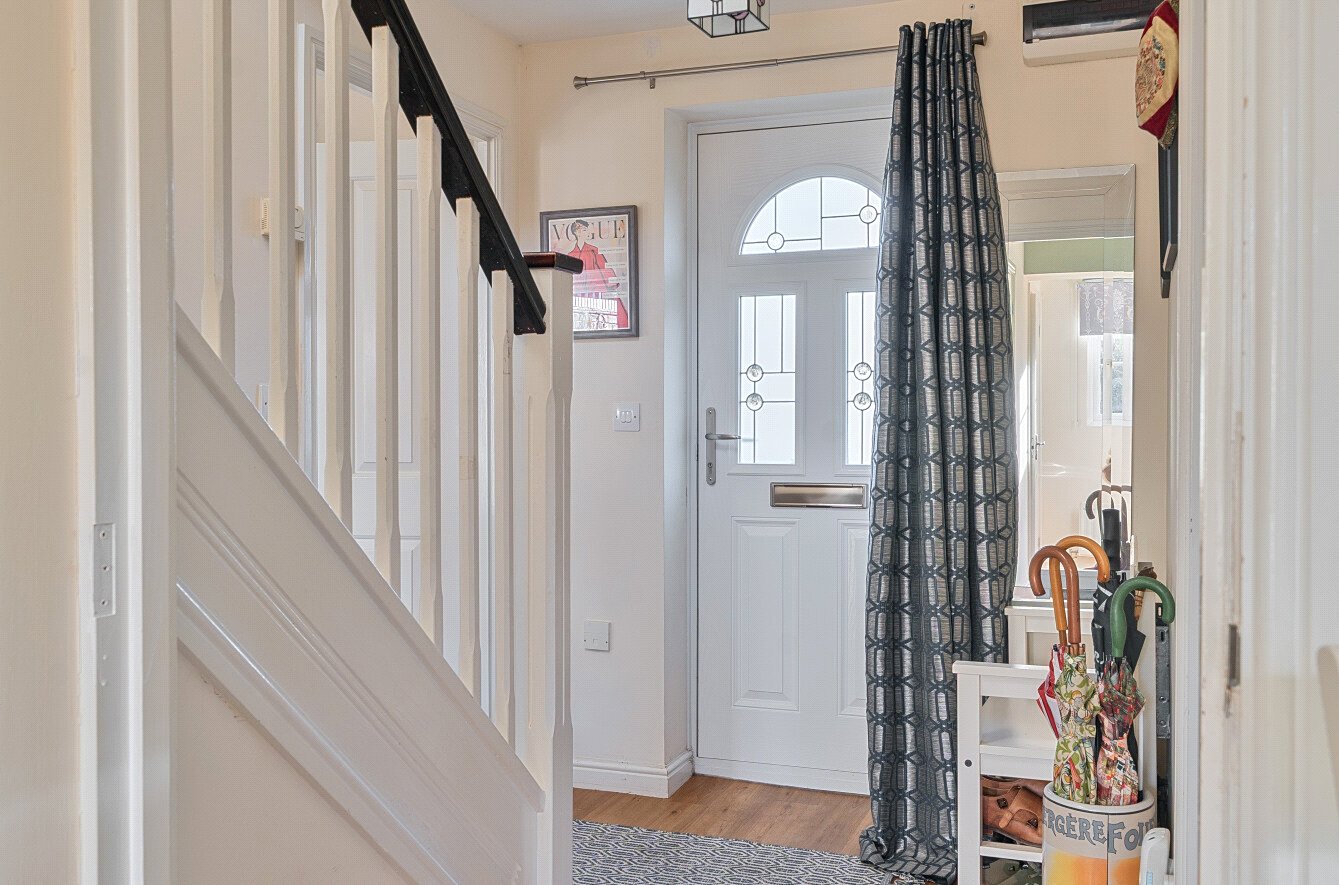 The first floor comprises three well-proportioned bedrooms. Both double bedrooms benefit from integrated wardrobes, while the third bedroom would make an ideal nursery, guest room, or home office. The main bedroom further benefits from its own en-suite shower room. A separate family bathroom is also situated on the first floor.