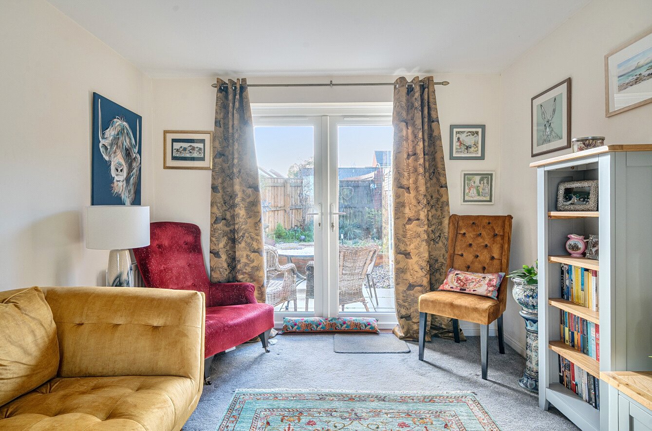 Upon entering the property, you are welcomed into a bright and inviting living room, featuring French doors that open directly onto the charming rear garden, creating a wonderful space for both relaxing and entertaining. To the left of the entrance hallway is a generously sized dining room, perfect for family meals or hosting guests. To the rear, the property offers a well-equipped kitchen with direct access to the garden. The low-maintenance rear garden benefits from a desirable south-westerly aspect and includes a paved patio area, decorative stone chippings, and well-stocked planted borders. There is excellent potential for the next owner to open up the dining room and kitchen to create a modern open-plan living space, subject to the necessary consents. Additional useful storage cupboards are conveniently located within this area of the hallway.