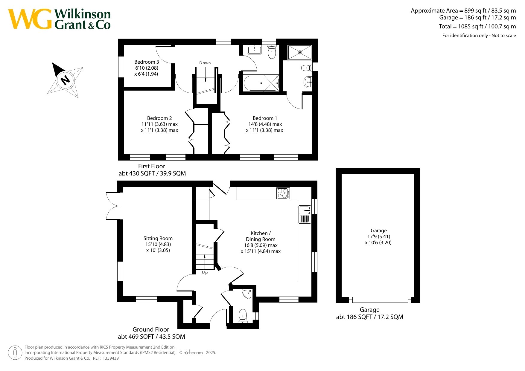 The 899 sq ft of accommodation is presented in stunning condition throughout. There is a lovely open-plan kitchen/dining room which has an extensive range of fitted units with integral fridge/freezer, dishwasher and washing machine, plus ample space for dining table and door to the rear pathway. The dual aspect sitting room has French doors to the garden. There is also a downstairs cloakroom.