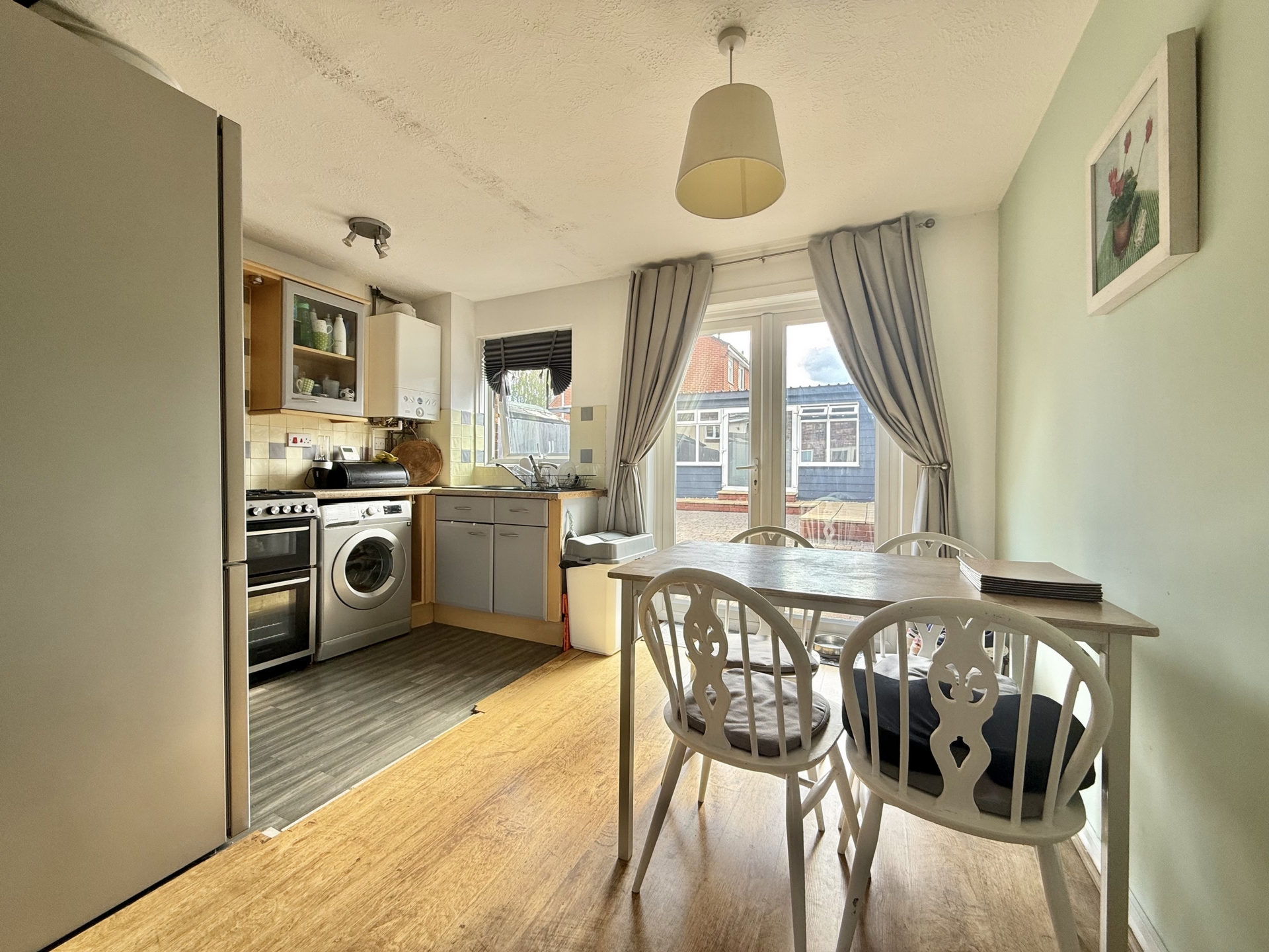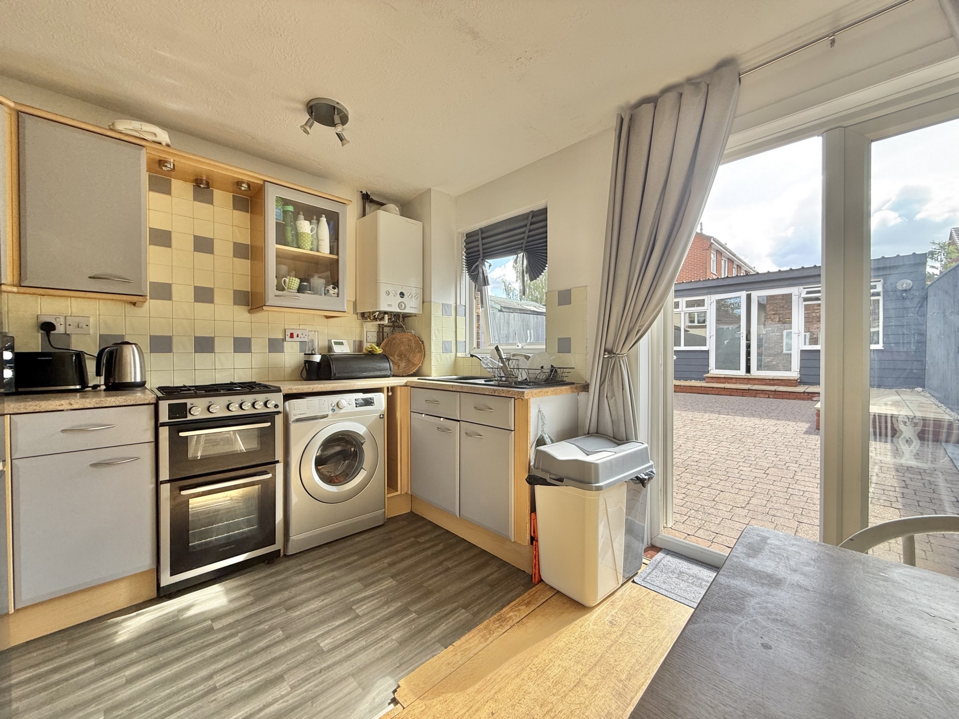 KITCHEN/DINER: 3.8m x 2.9m (12'6" x 9'6"), Base cupboards and drawers with worktop over, sink and drainer, appliance space for cooker, washing machine and fridge freezer. Wall mounted boiler, double glazed window to the rear, double doors to the rear garden, wall mounted cupboards.