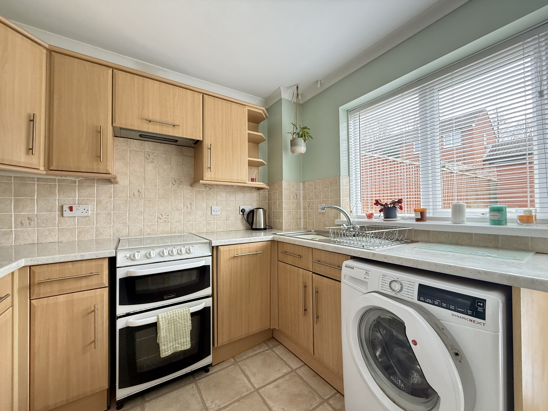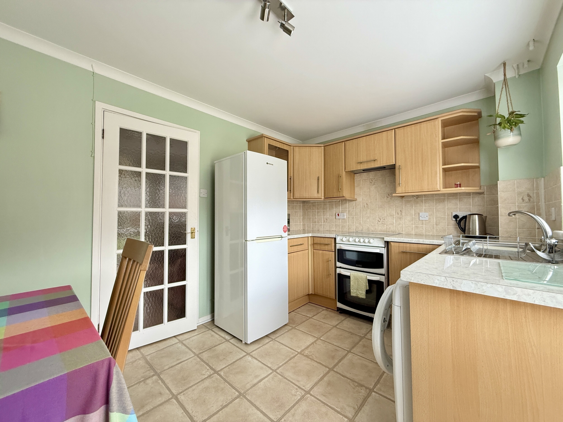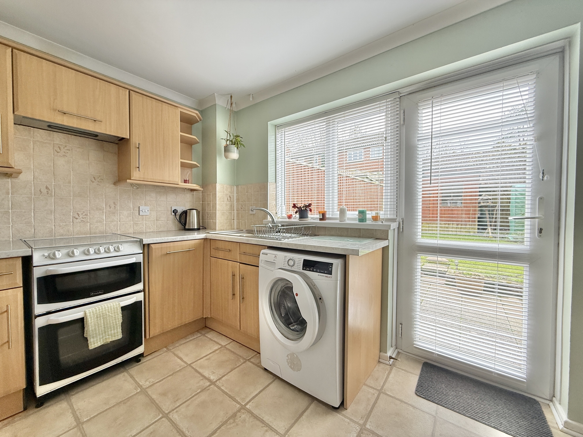 KITCHEN/DINER: 3.9m x 2.6m (12'10" x 8'6"), Base cupboards and drawers with worktop over, space for cooker, space for fridge freezer, space for washing machine, sink and drainer, wall mounted cupboards, double glazed window to the rear, double glazed door to the rear.