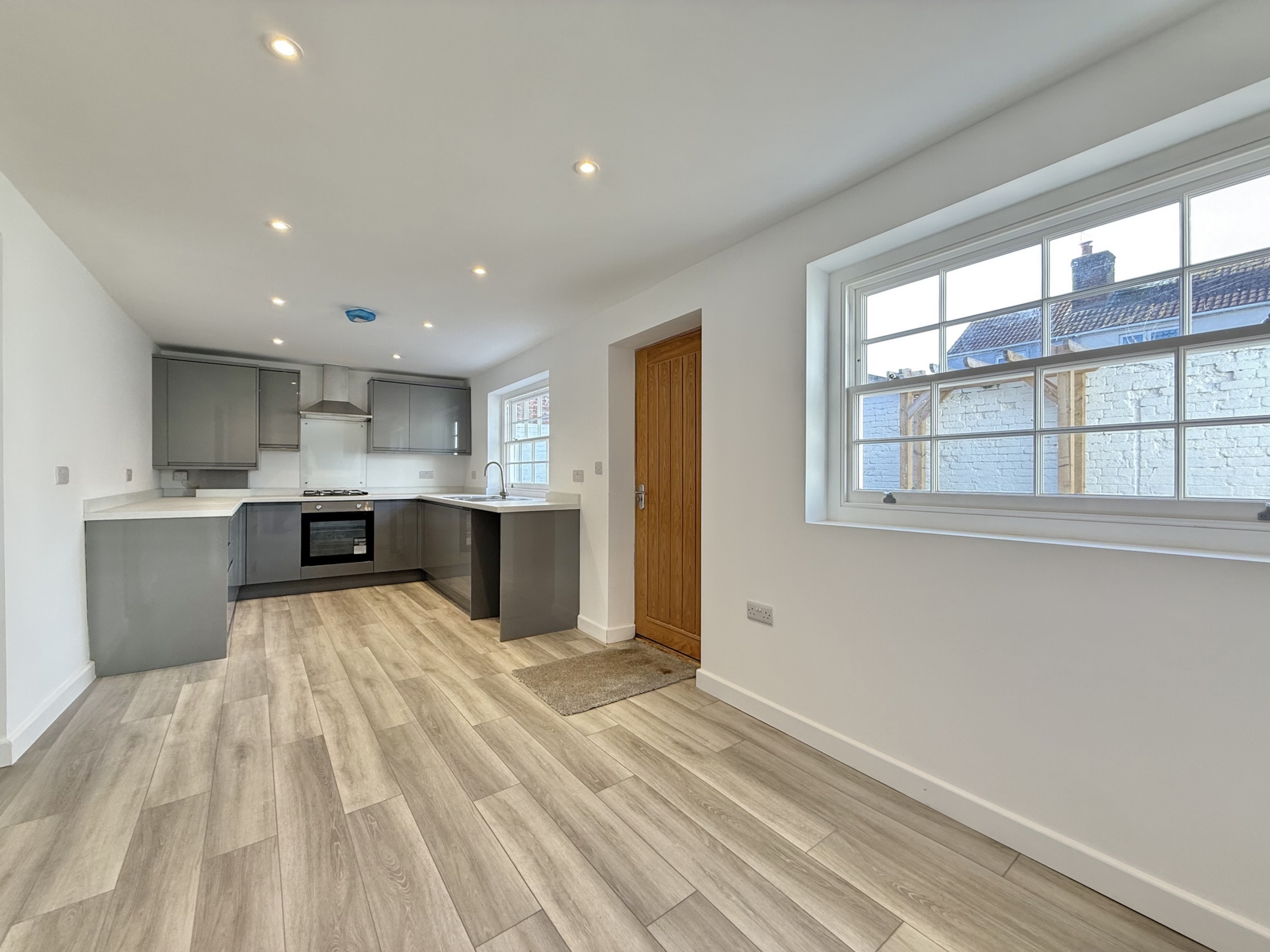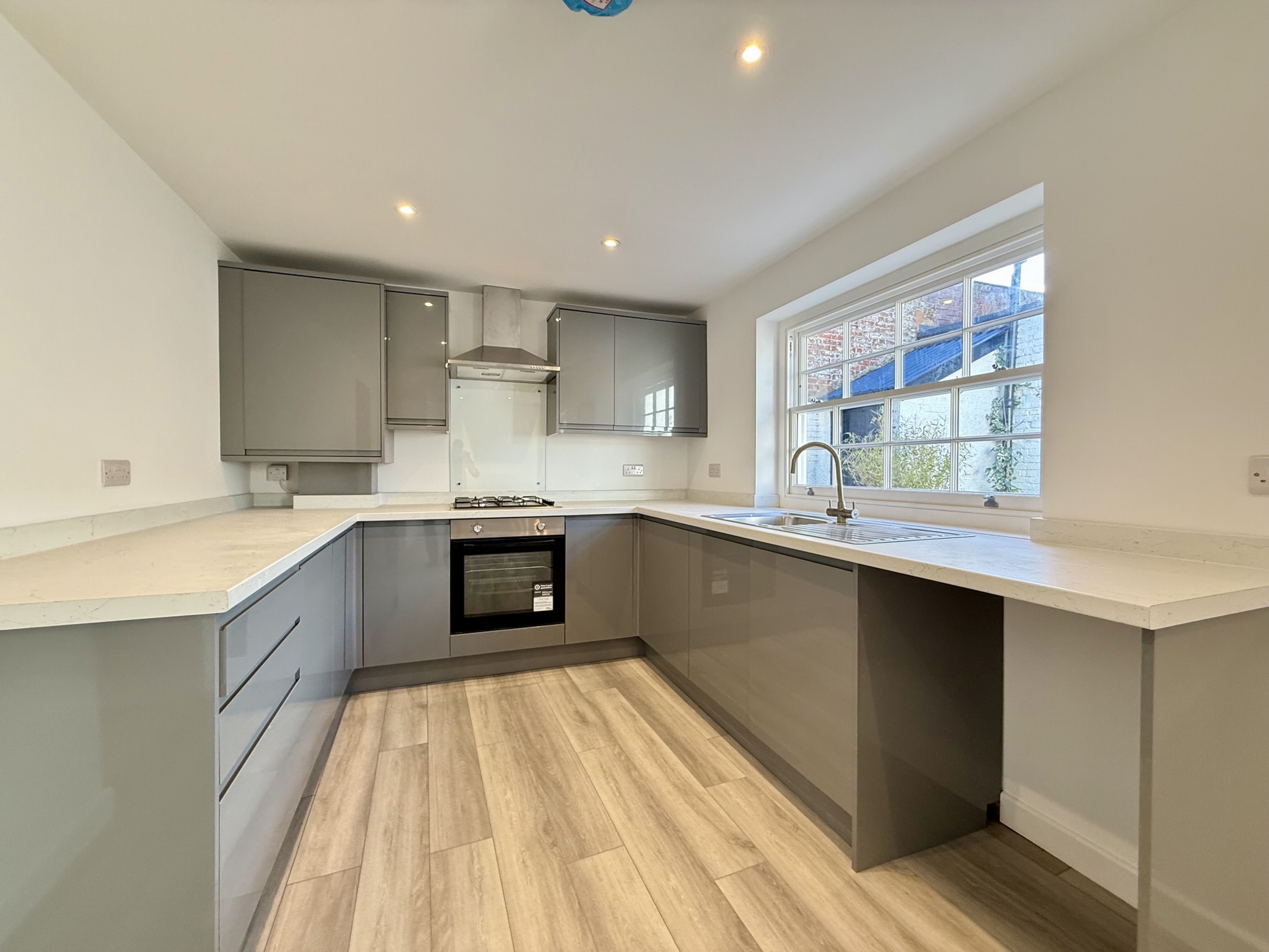 KITCHEN/BREAKFAST ROOM: 6.7m x 2.7m (21'12" x 8'10"), Window to the rear, base cupboards and drawers with worktop over, sink and drainer, built in oven and hob with hood over, wall mounted cupboards, wall mounted boiler, appliance space.