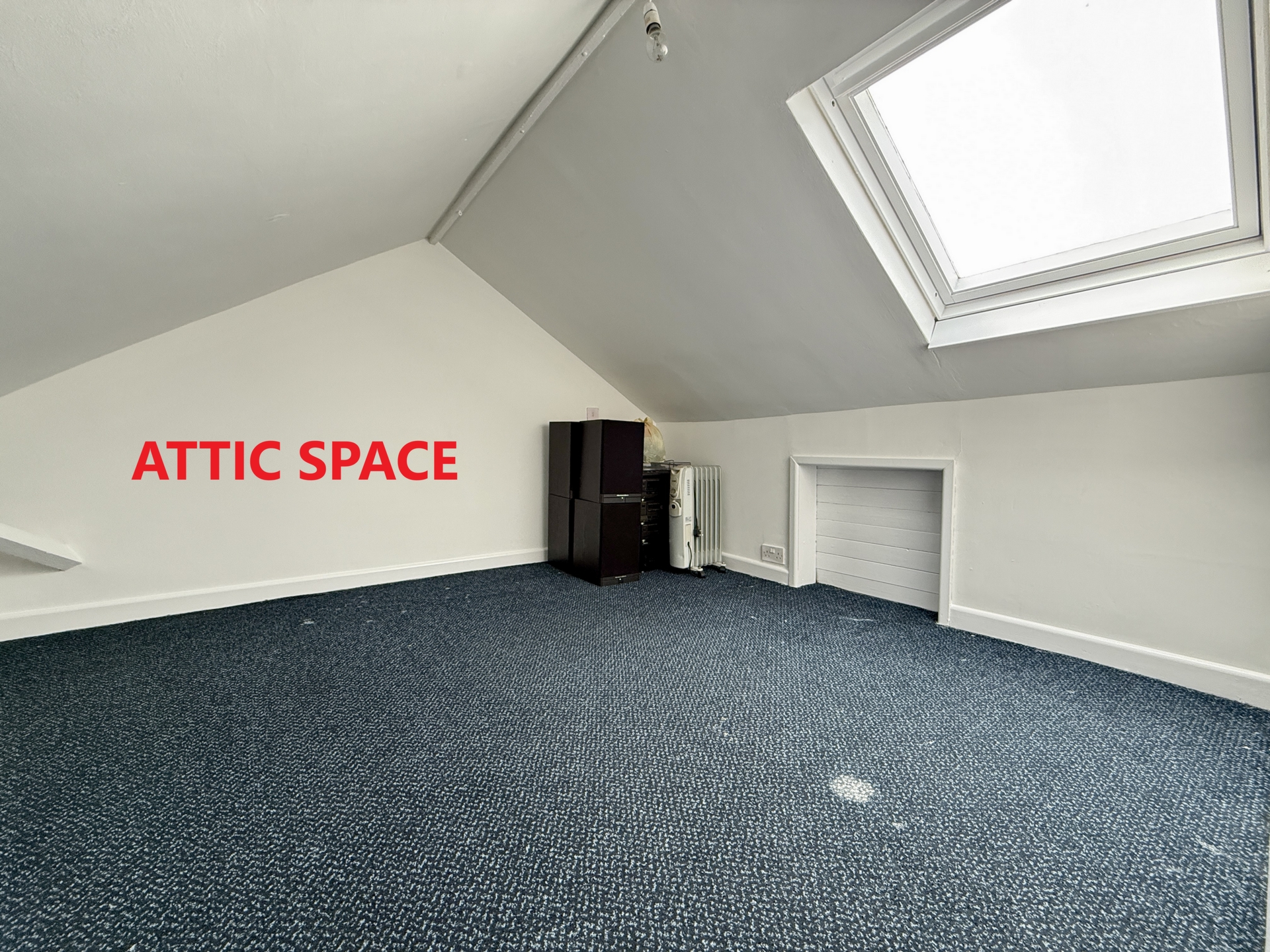 FIRST FLOOR LANDING: Stairs to attic, doors to..