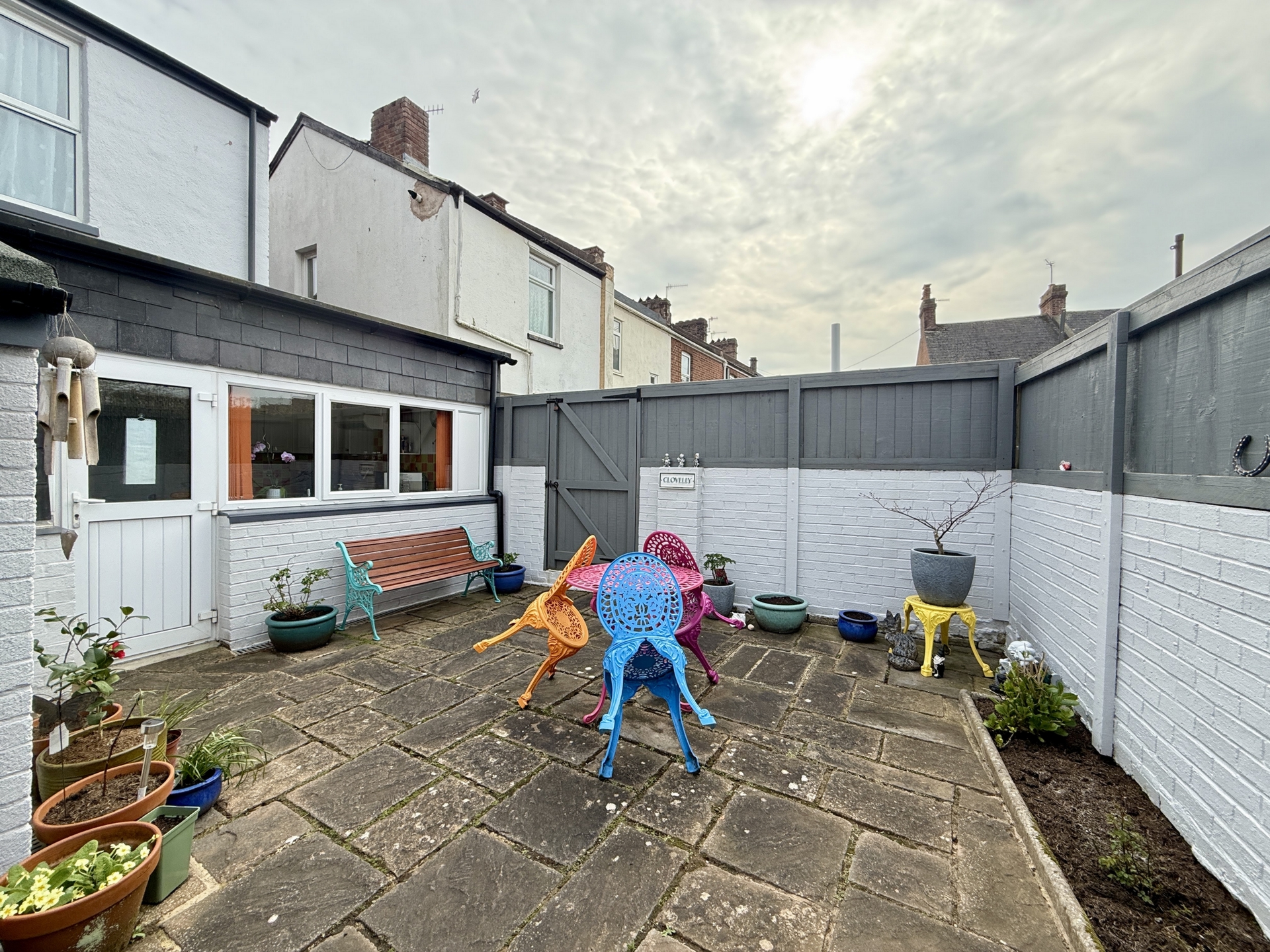 OUTSIDE: To the rear of the property is an enclosed garden laid to paved patio with gate providing handy access. There is also an out building with appliance space, plumbing for washing machine and external tap.