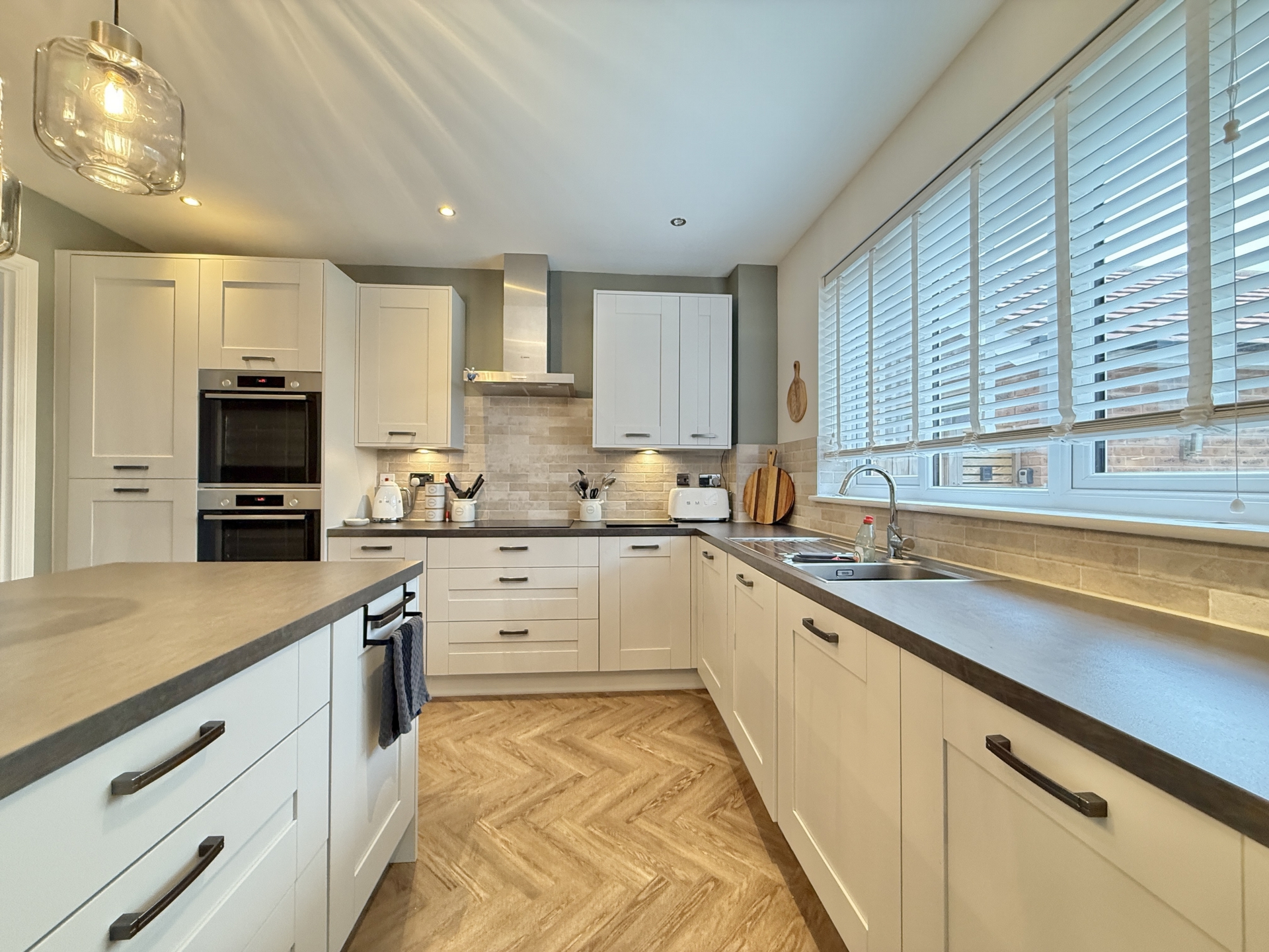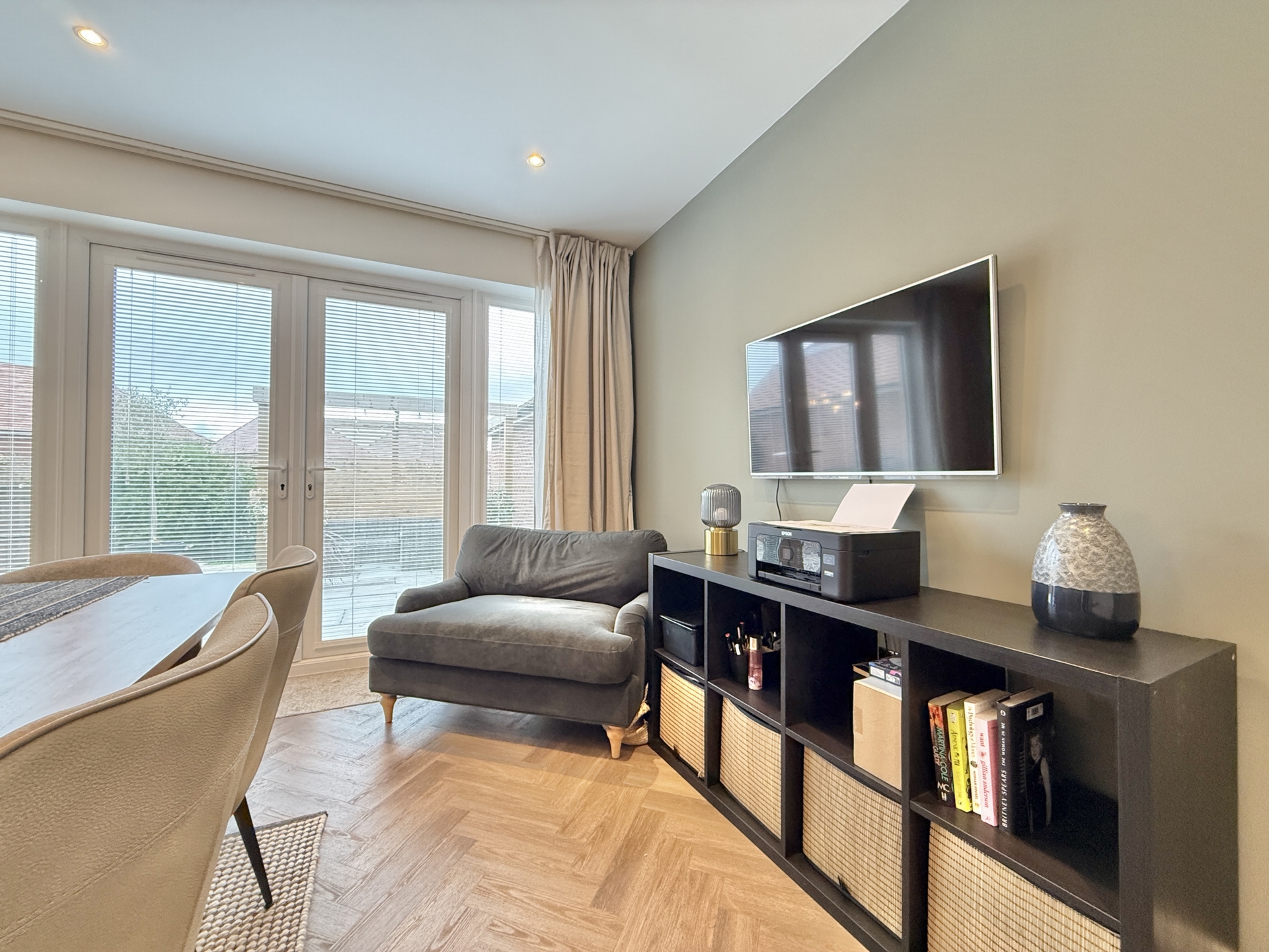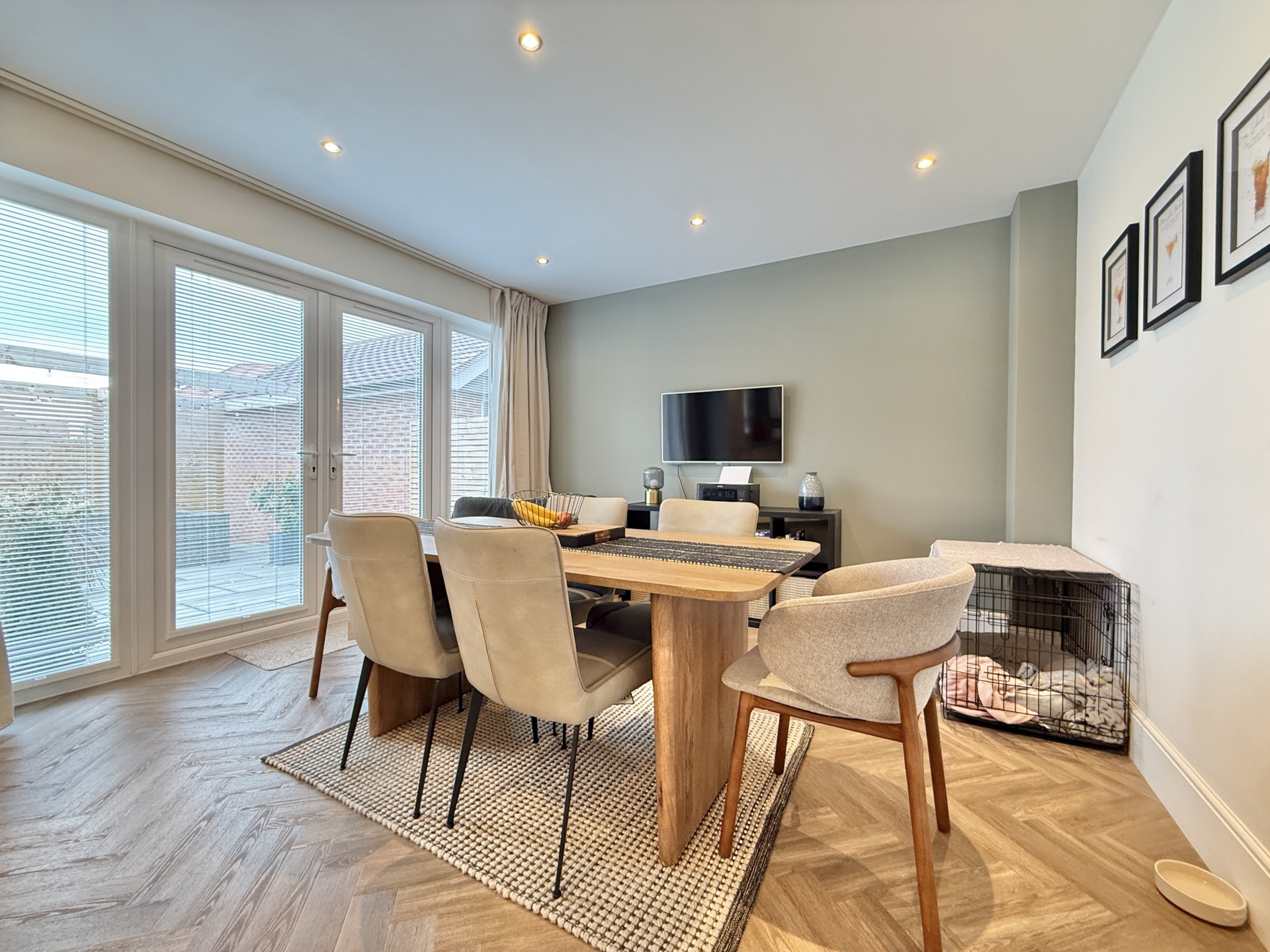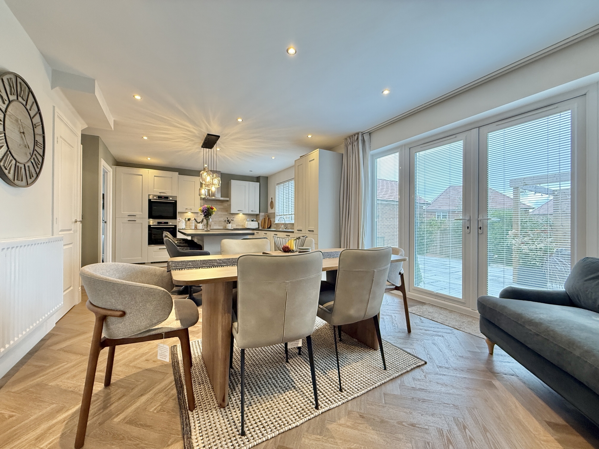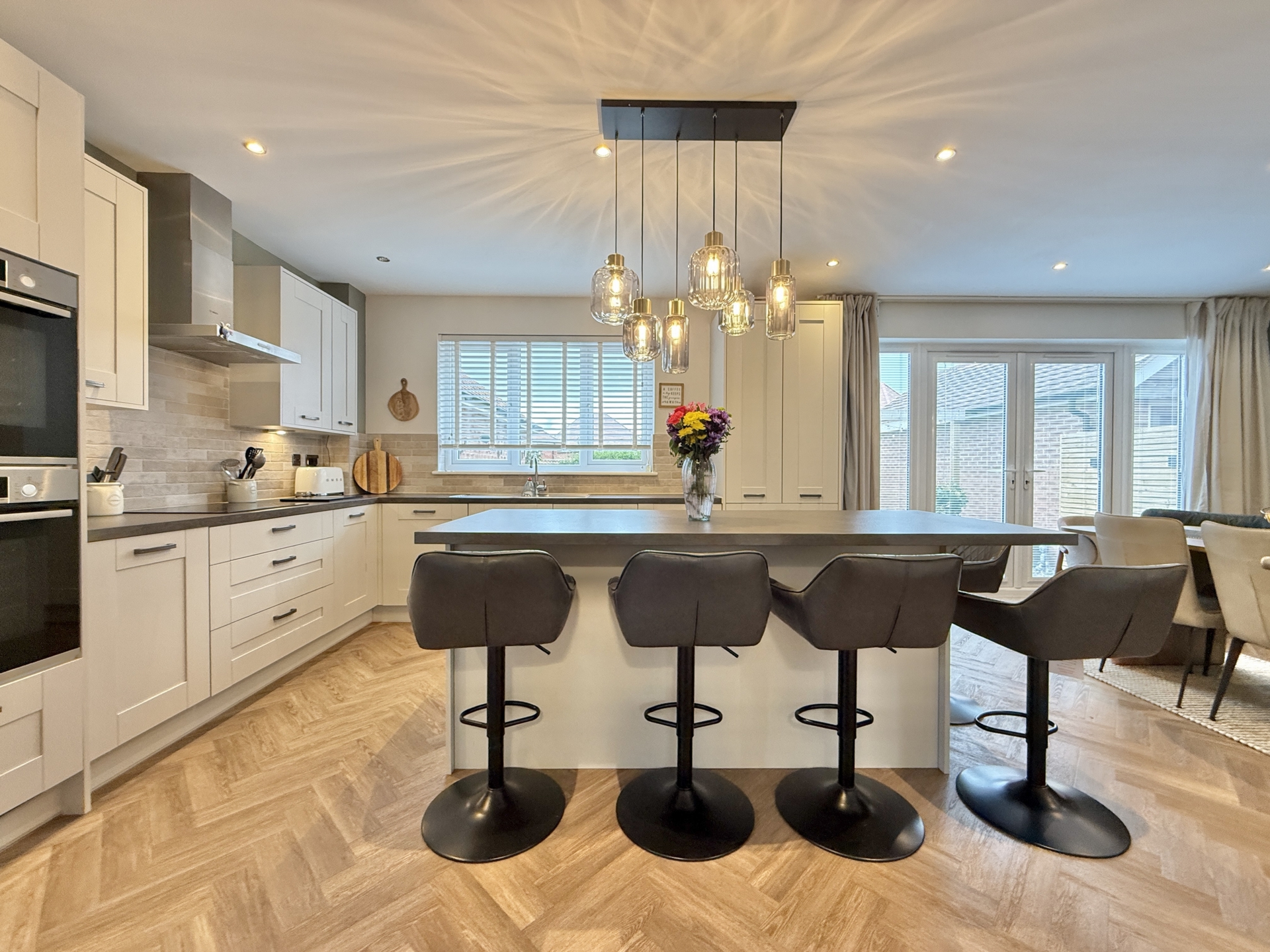 KITCHEN/DINING/LIVING ROOM: 7.7m x 3.8m (25'3" x 12'6"), Base cupboards and drawers with worktop over, sink and drainer, built in oven with separte hob with hood over, wall mounted cupboards, built in fridge and freezer, built in dishwasher, island with storage under, radiator, double glazed window to the rear, double glazed doors to the rear, doorway to utility.