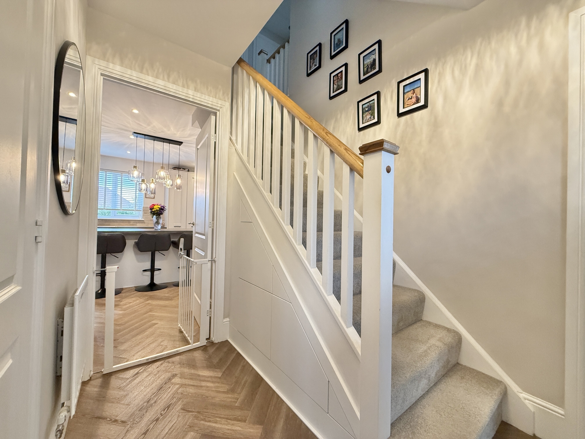 ENTRANCE HALL: Stairs to first floor landing, storage cupboard, radiator.