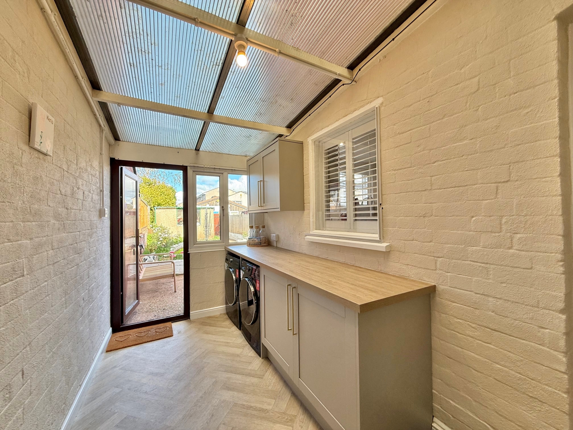 LEAN TO..: Radiator, double glazed door to the rear, appliance space and storage.