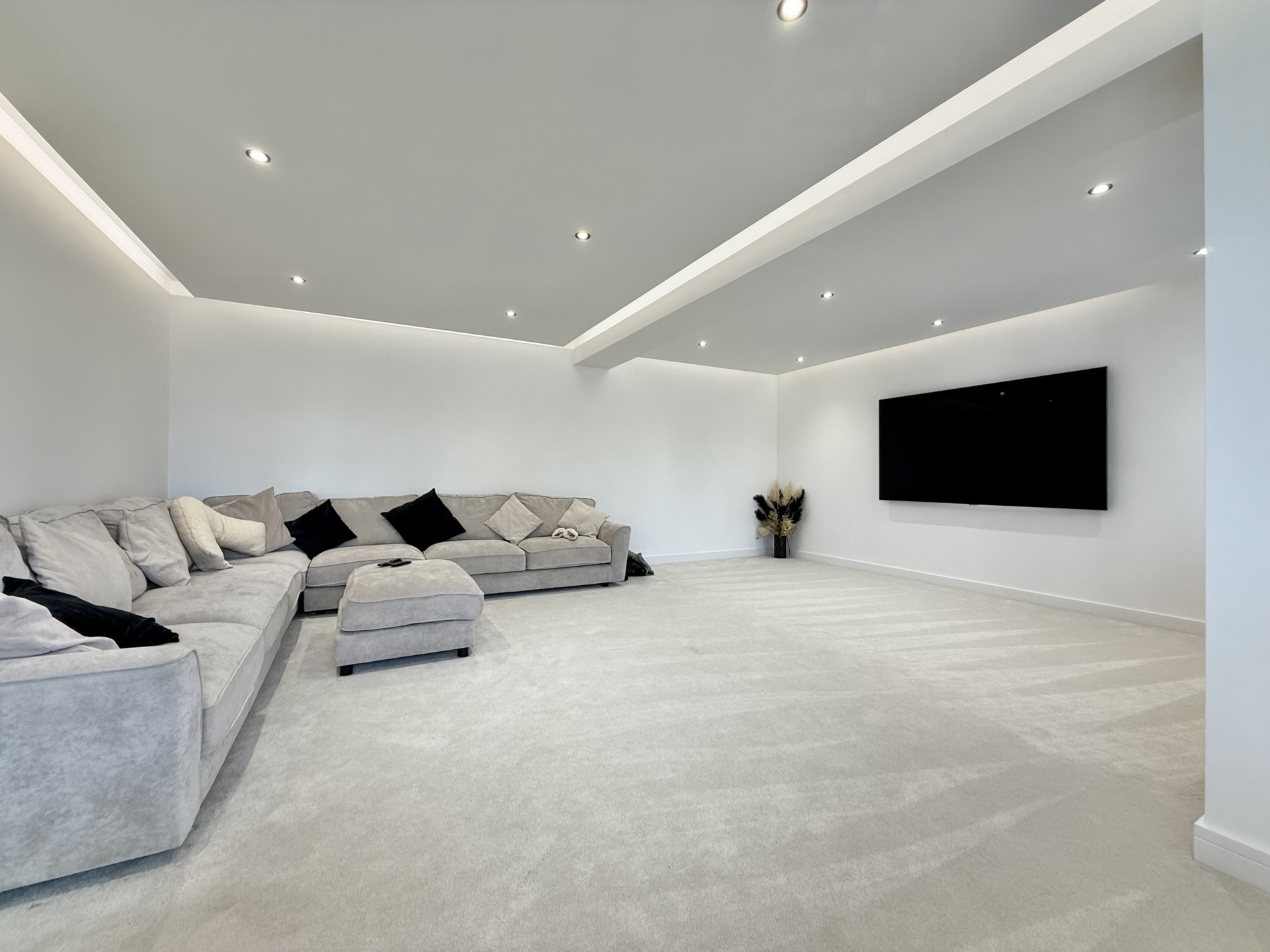 OUTSIDE: To the front of the property, a spacious driveway provides off-road parking for multiple vehicles and leads directly to the attached garage. At the rear, you'll find a generously sized, low-maintenance garden featuring a combination of paved patio areas and a section of artificial lawn-perfect for relaxing or entertaining. A standout feature is the large garden room, offering a versatile space ideal for a home office, gym, or studio. Complete with power, lighting, and stylish bi-fold doors, it seamlessly blends indoor and outdoor living.