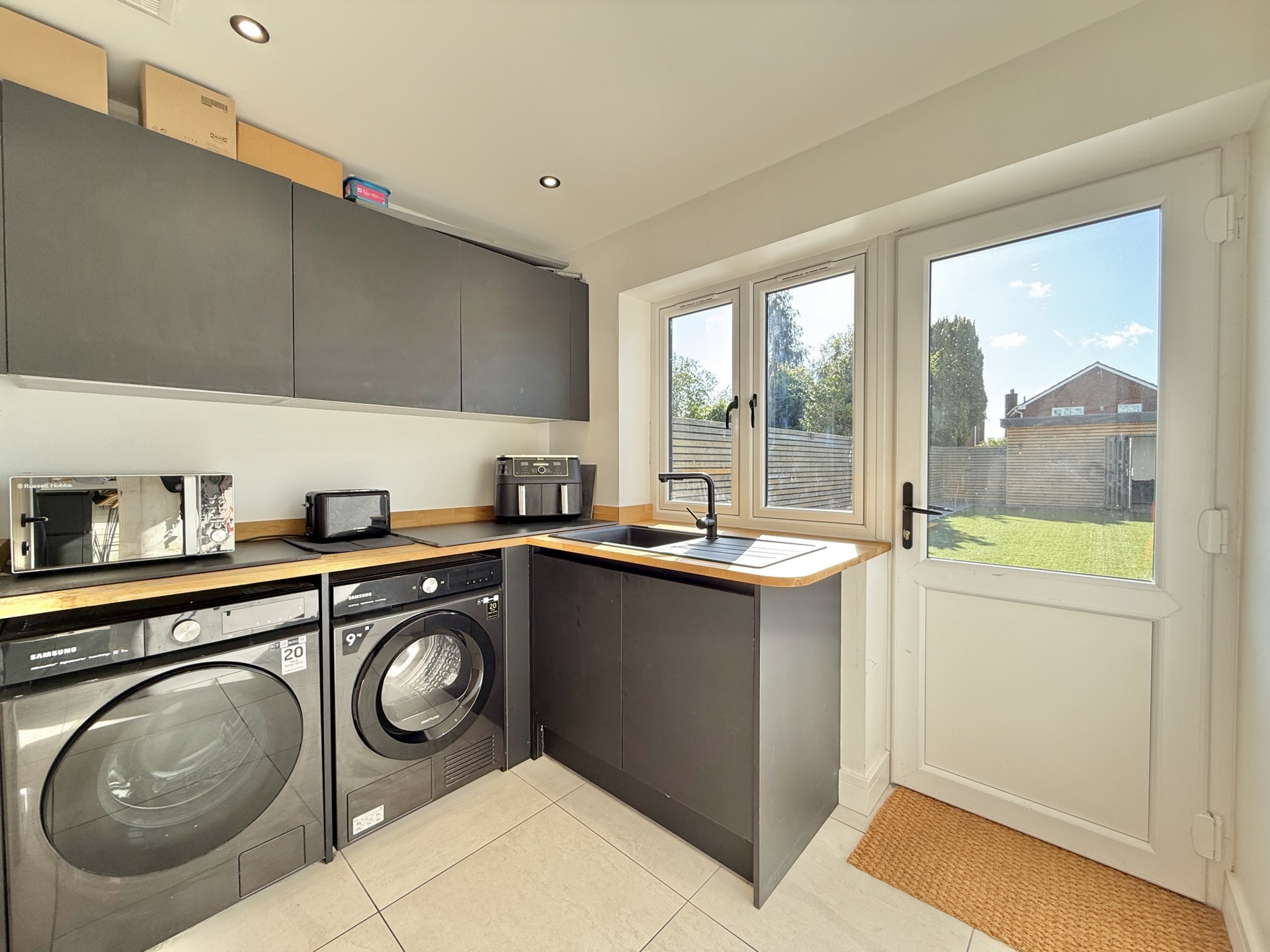 UTILITY: 3.1m x 2.6m (10'2" x 8'6"), Space for washing machine and tumble dryer, sink and drainer, wall mounted cupboards, double glazed window to the rear, door to WC.