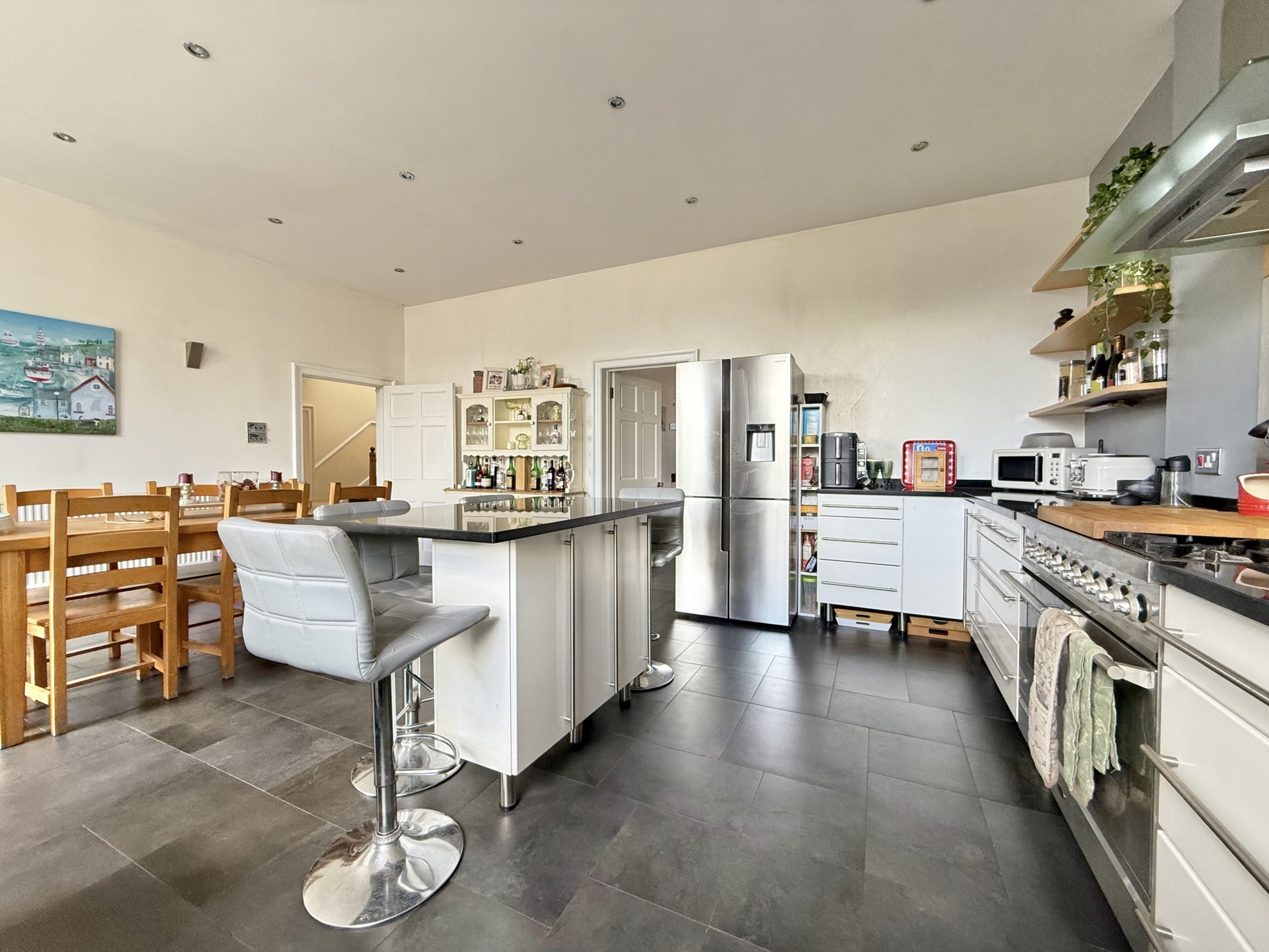 KITCHEN/DINING: 6.1m x 4.8m (20'0" x 15'9"), Windows to the front, radiator, base cupboards and drawers with worktop over, space for cooker with hood over, twin sinks with chiselled drainer, island with storage under, space for dishwasher.