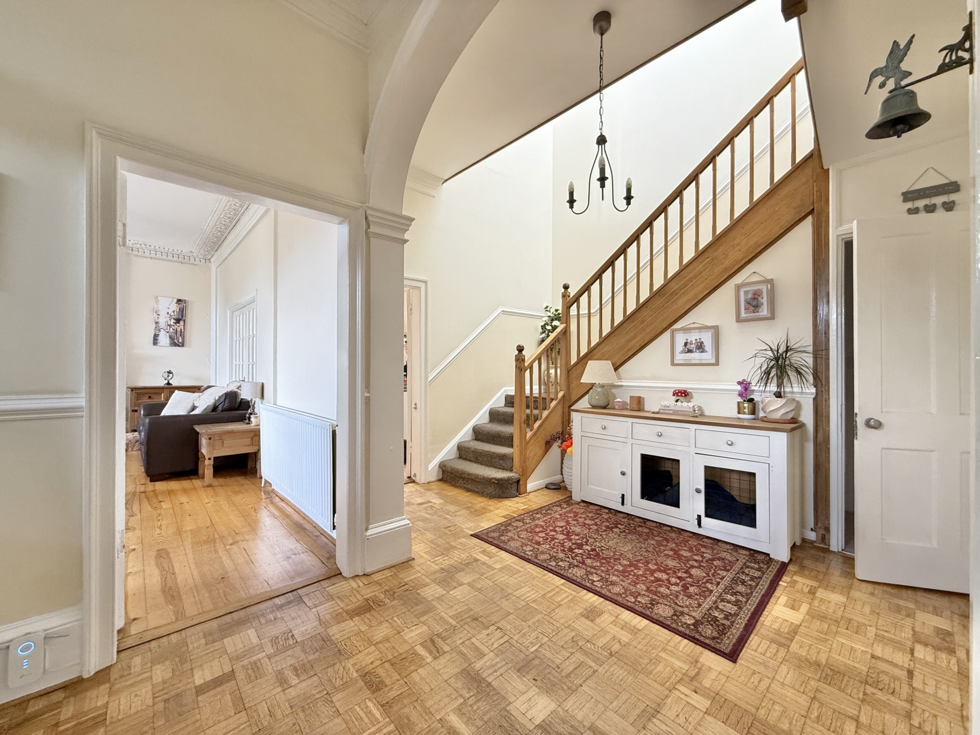 Marchmont is a distinguished Grade II Listed former rectory, offering beautifully presented living space within an elegant semi-detached residence. The property retains a rich array of period features, including soaring ceilings, grand sash windows, feature fireplaces, and exquisite decorative cornicing and mouldings. These timeless details are seamlessly complemented by refined contemporary finishes, creating a perfect blend of historic charm and modern comfort.