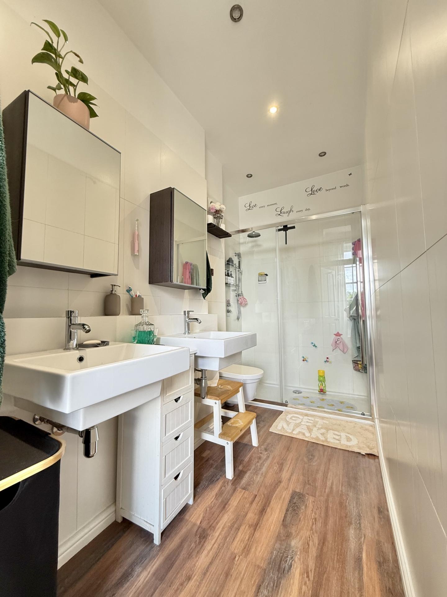 EN-SUITE: WC with concealed cistern, wash hand basins, shower cubicle, spot lights.