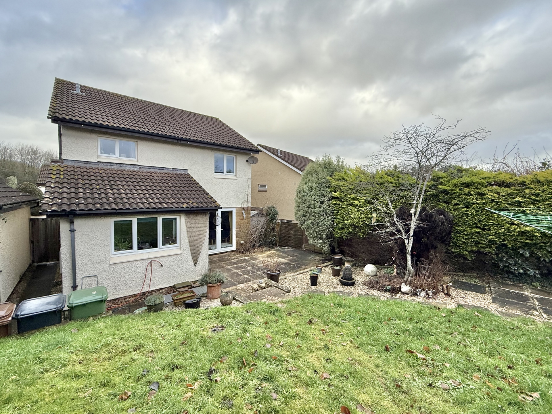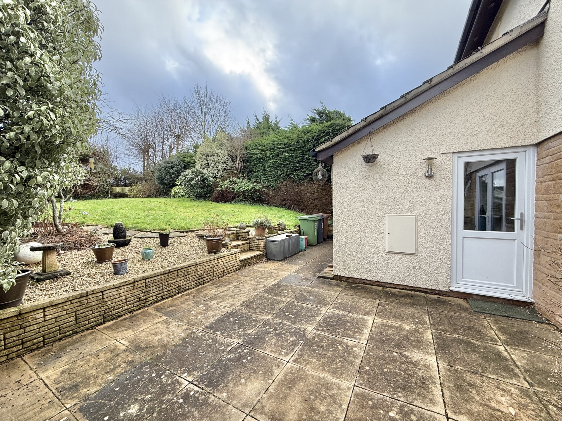 OUTSIDE: To the front the property benefits from a driveway providing access to the entrance and garage with a well maintained lawn and established shrubs.To the rear lies a private, enclosed garden designed for both relaxation and entertaining. A paved patio creates an ideal space for alfresco dining, with steps leading up to a further lawned area bordered by mature shrubs and trees. An additional section of stone chippings adds interest while a convenient door provides direct access to the garage.