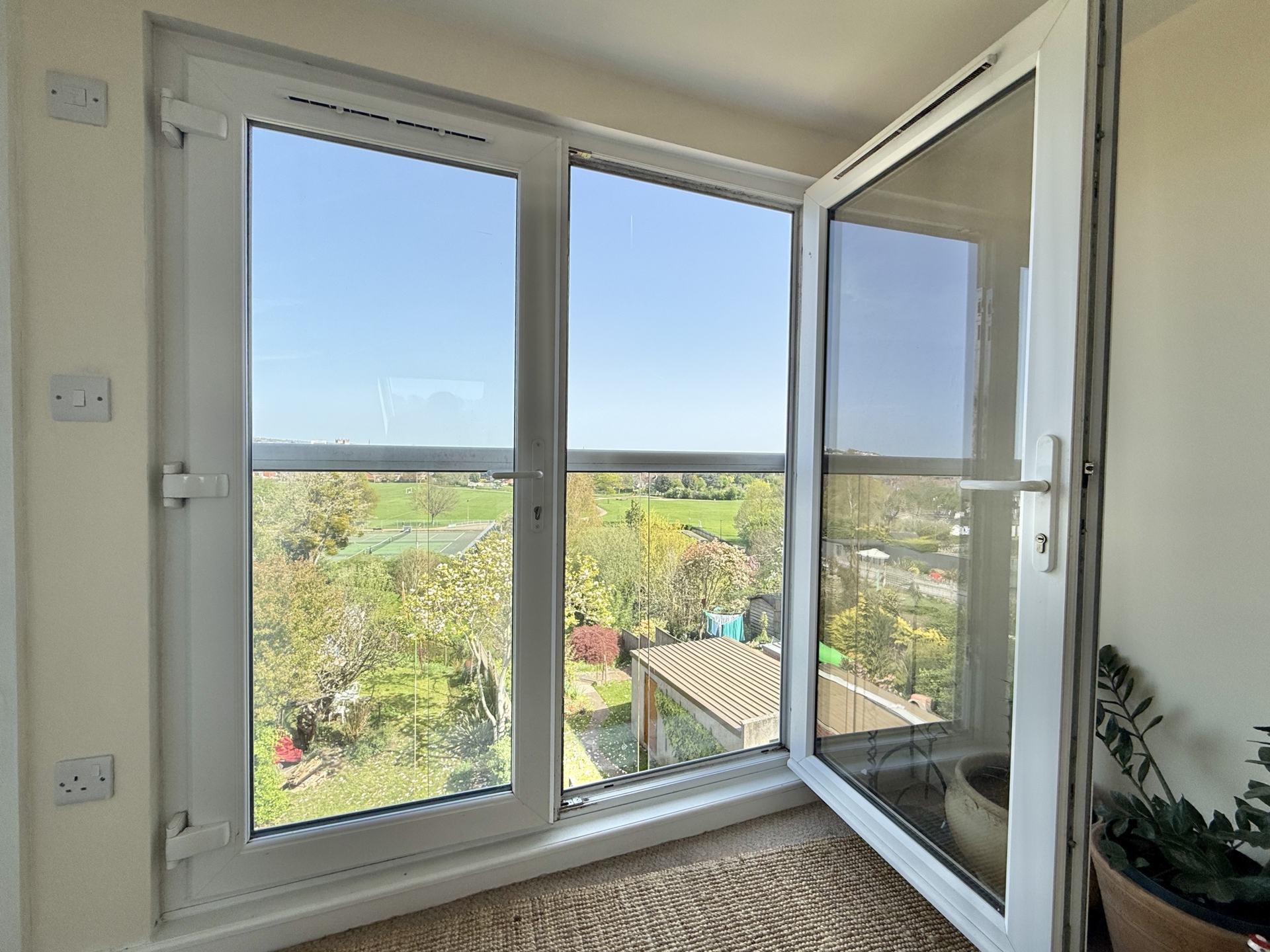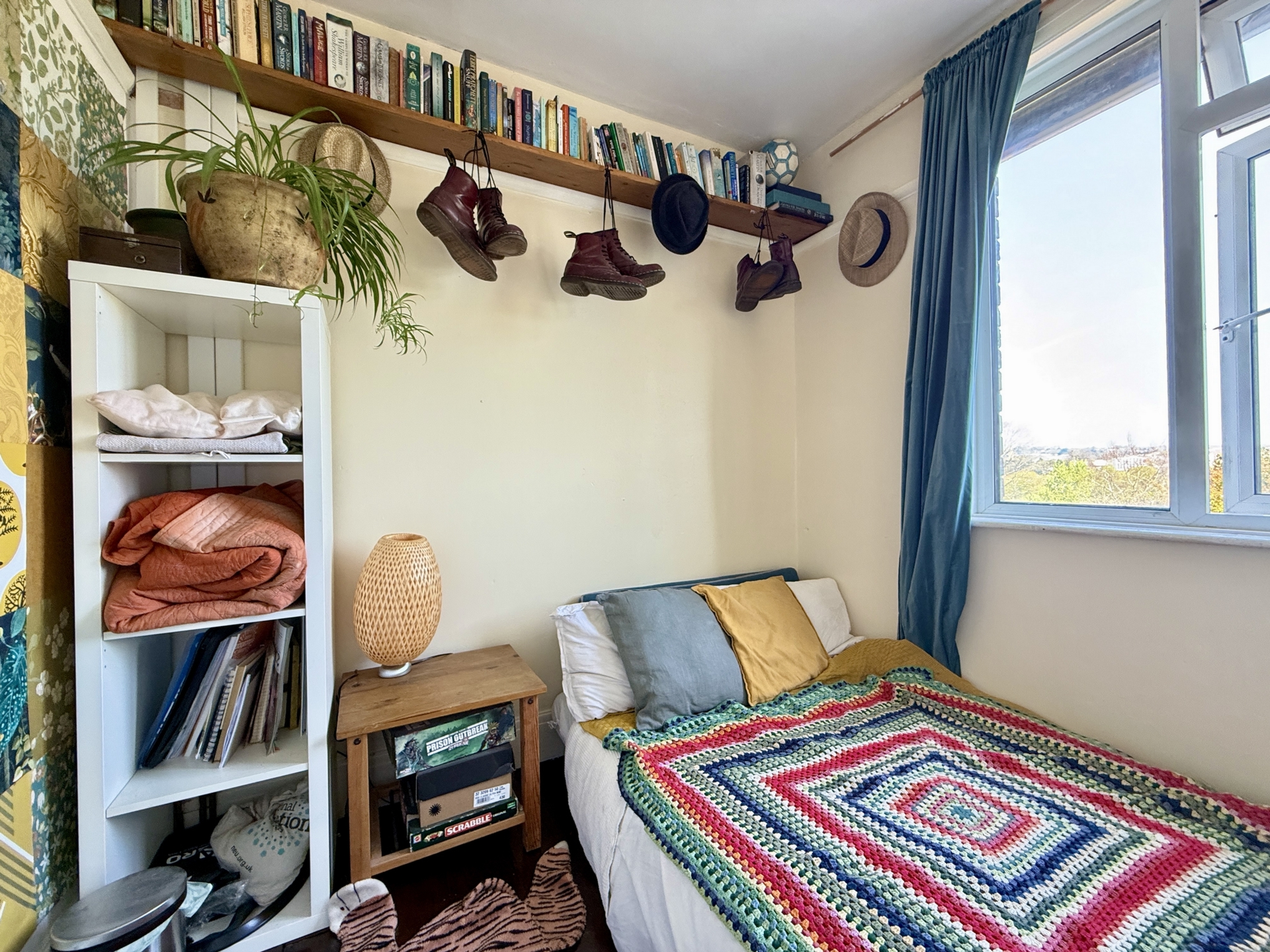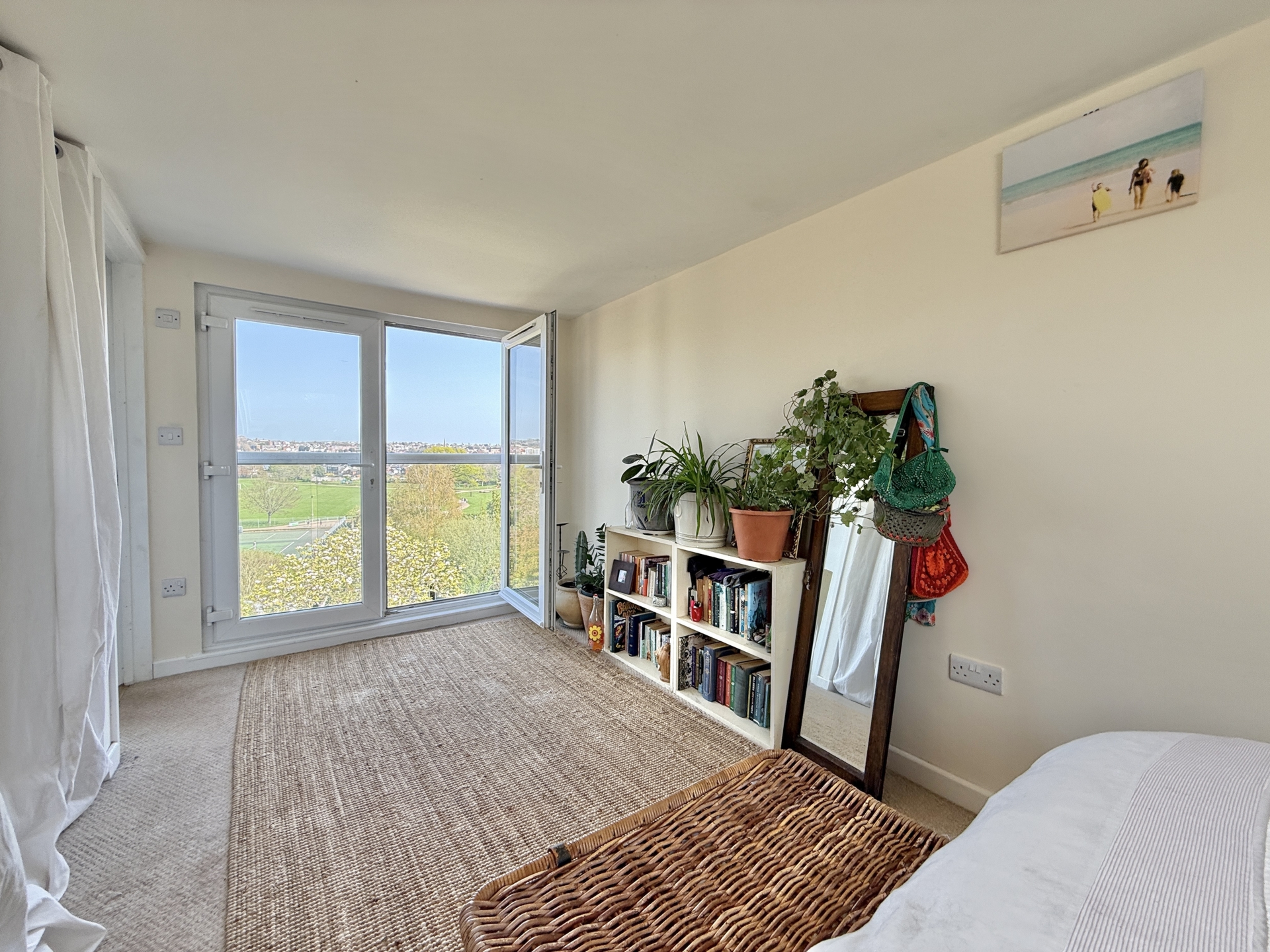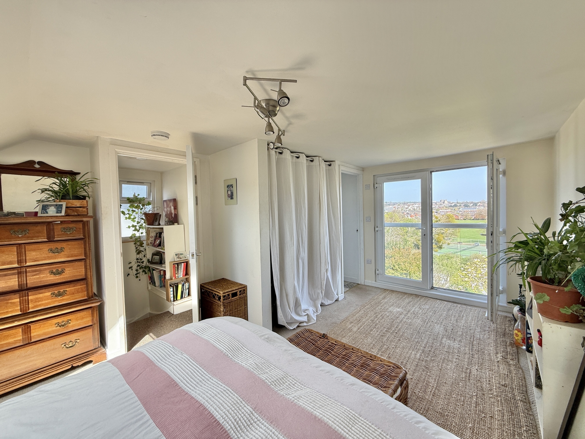 BEDROOM 1: TBC, Double glazed doors to the Juliet balcony, radiator, roof window to the front.