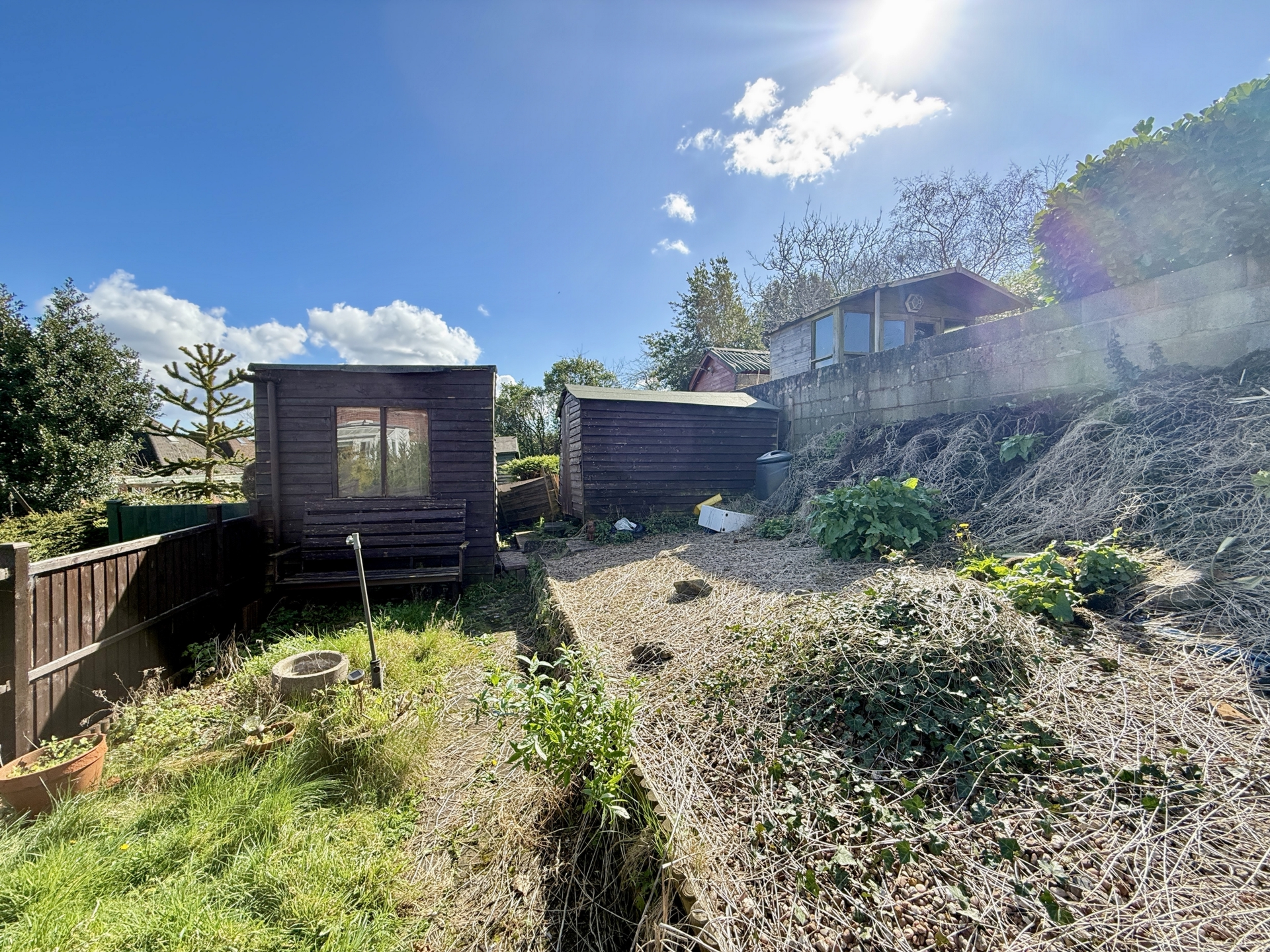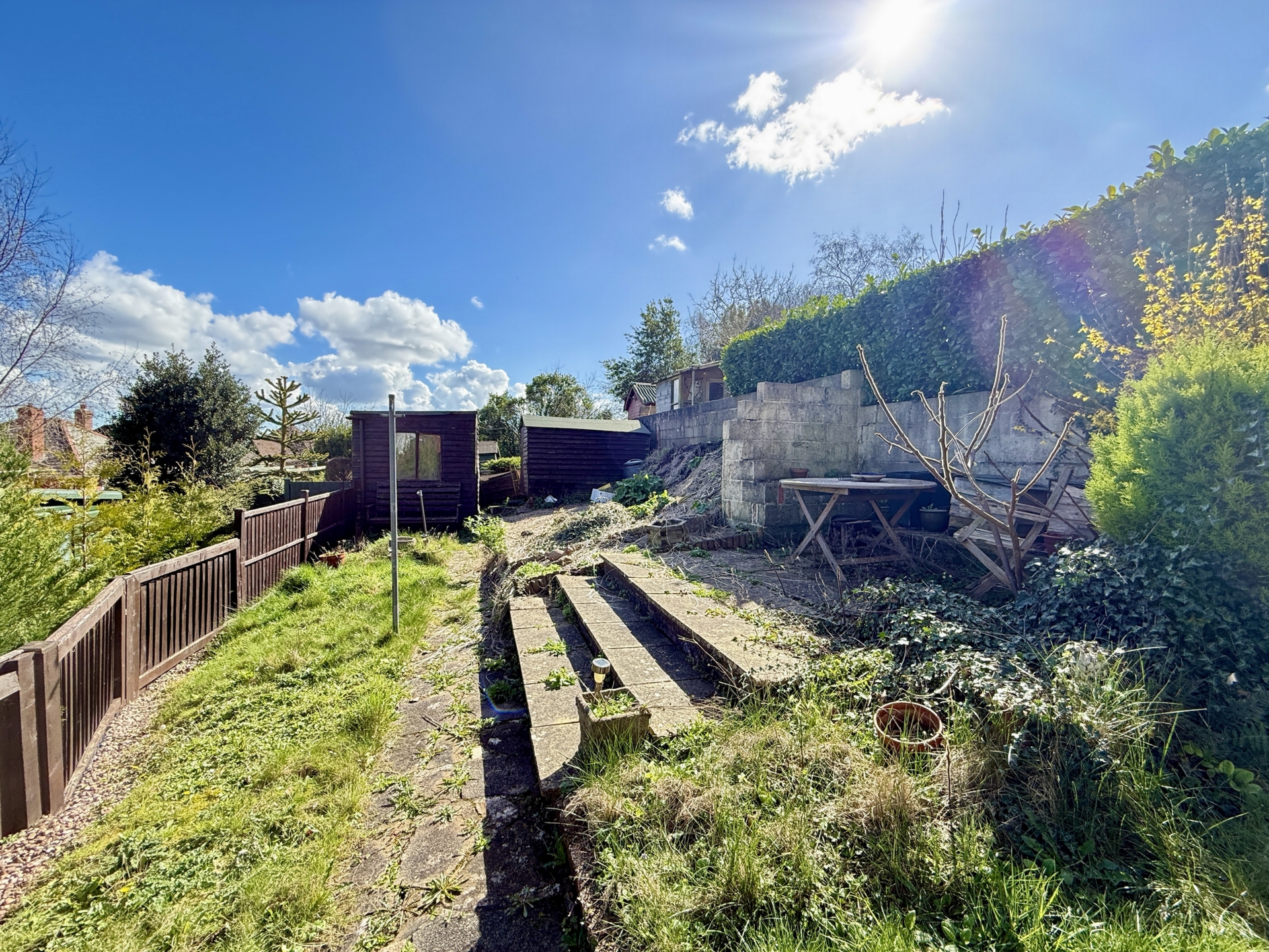 OUTSIDE: To the front of the property steps lead up to the front door with access to the rear garden which is predominately laid to lawn with paved patio and two handy timber storage sheds.