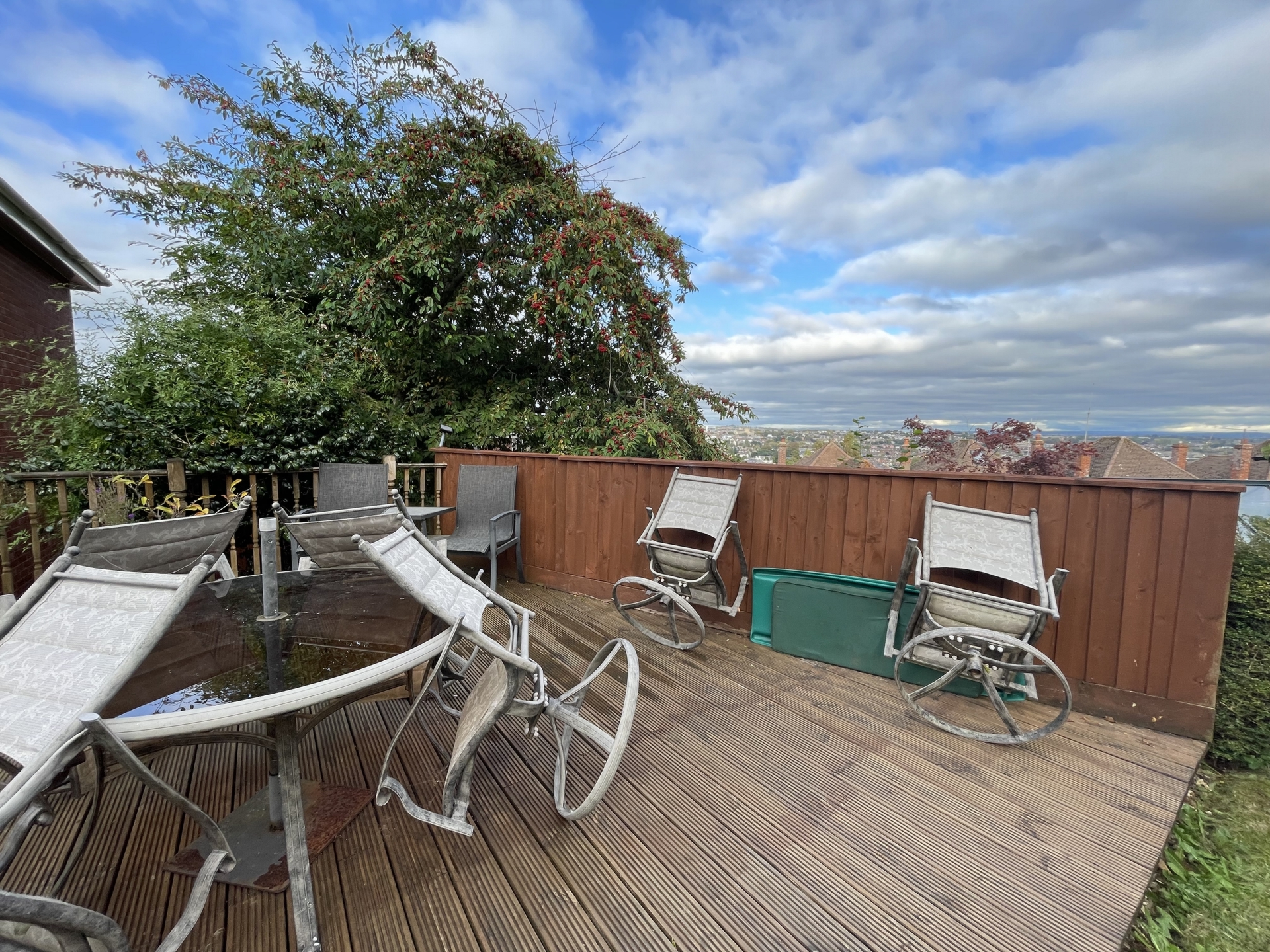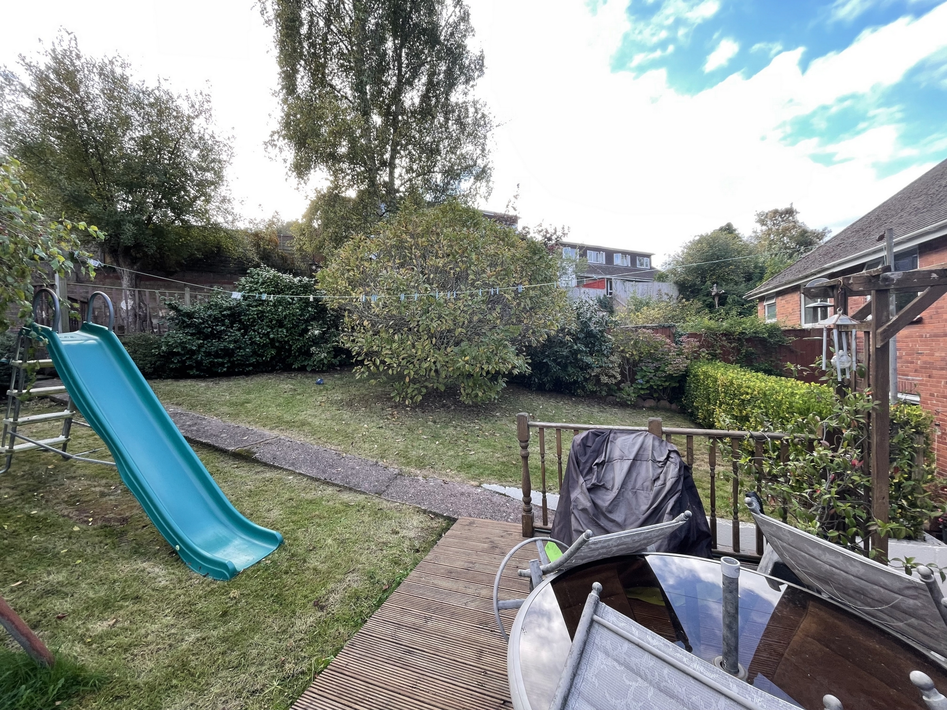 To the rear is a patio area with a gate providing side access, steps lead to the upper garden which is mainly laid to lawn with a decked area, handy storage shed.