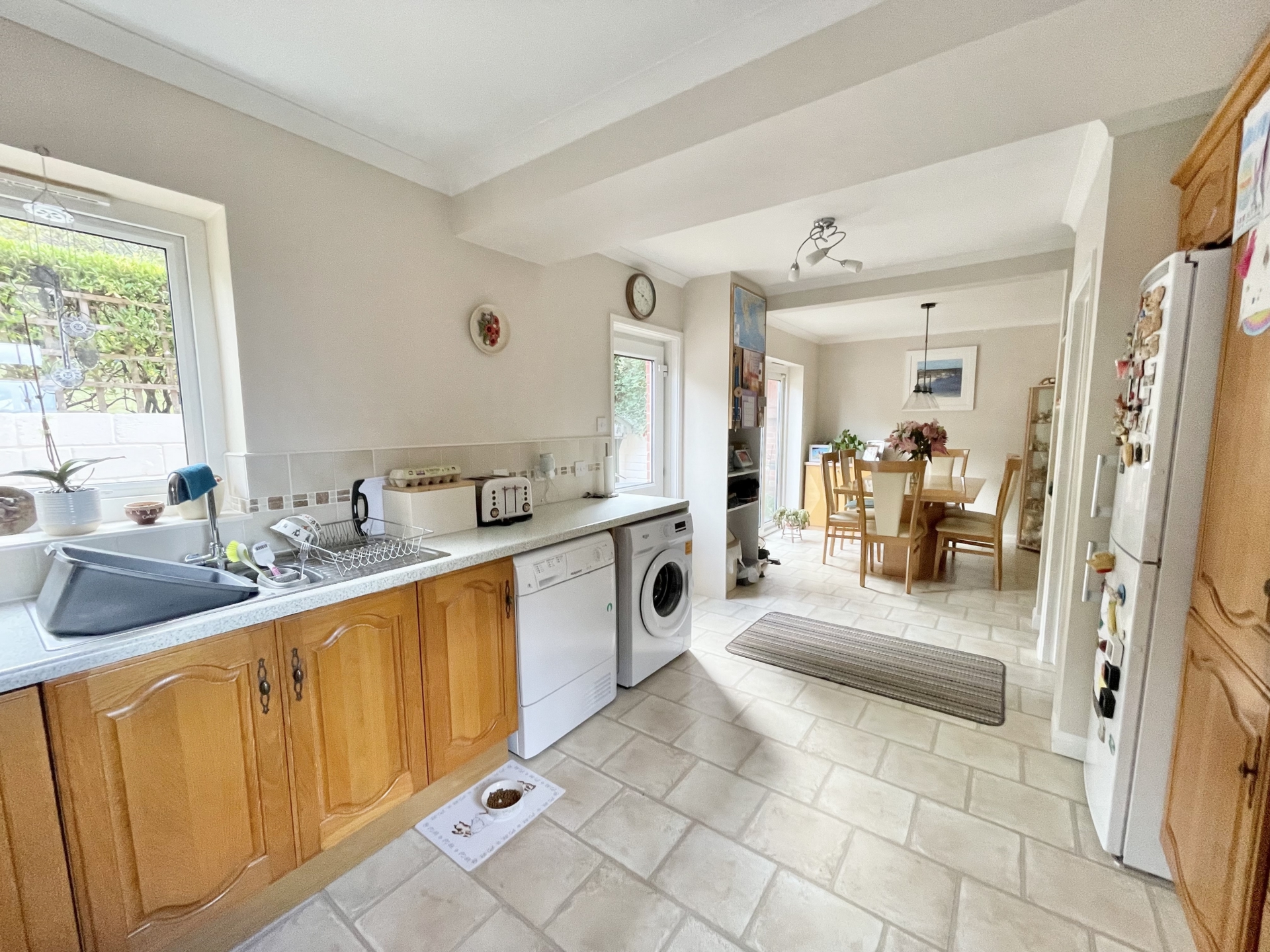 KITCHEN/DINER: 8.00m x 3.20m (26'3" x 10'6"), Base cupboards and drawers with work top over, sink and drainer with mixer tap, space for fridge freezer, space for washing machine, wall mounted cupboards, cupboardhousing wall mounted boiler, double glazed windows to front and reat, doors to reat garden.