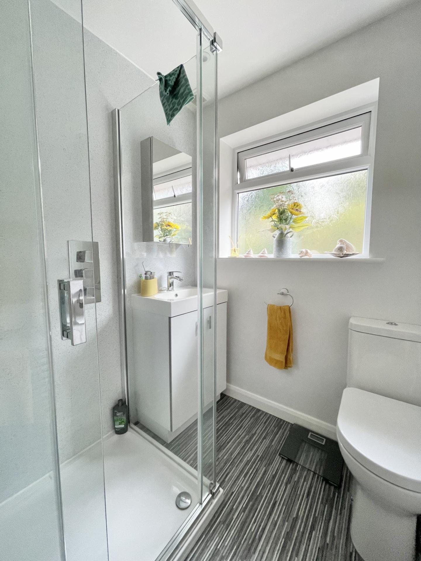 BATHROOM: Close coupled WC, wash hand basin, shower cubicle with shower over.