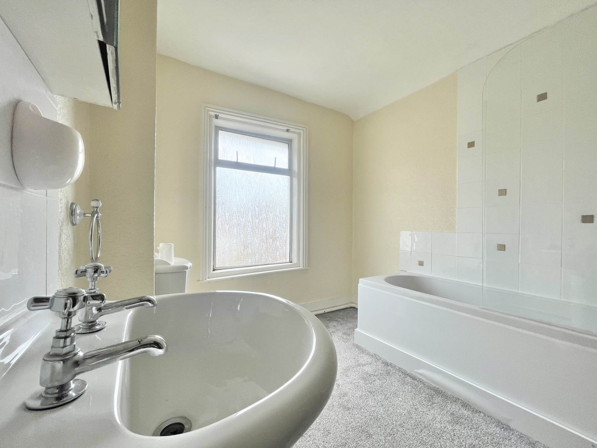BATHROOM: Close coupled WC, wash hand basin, panelled bath with electric shower, radiator.