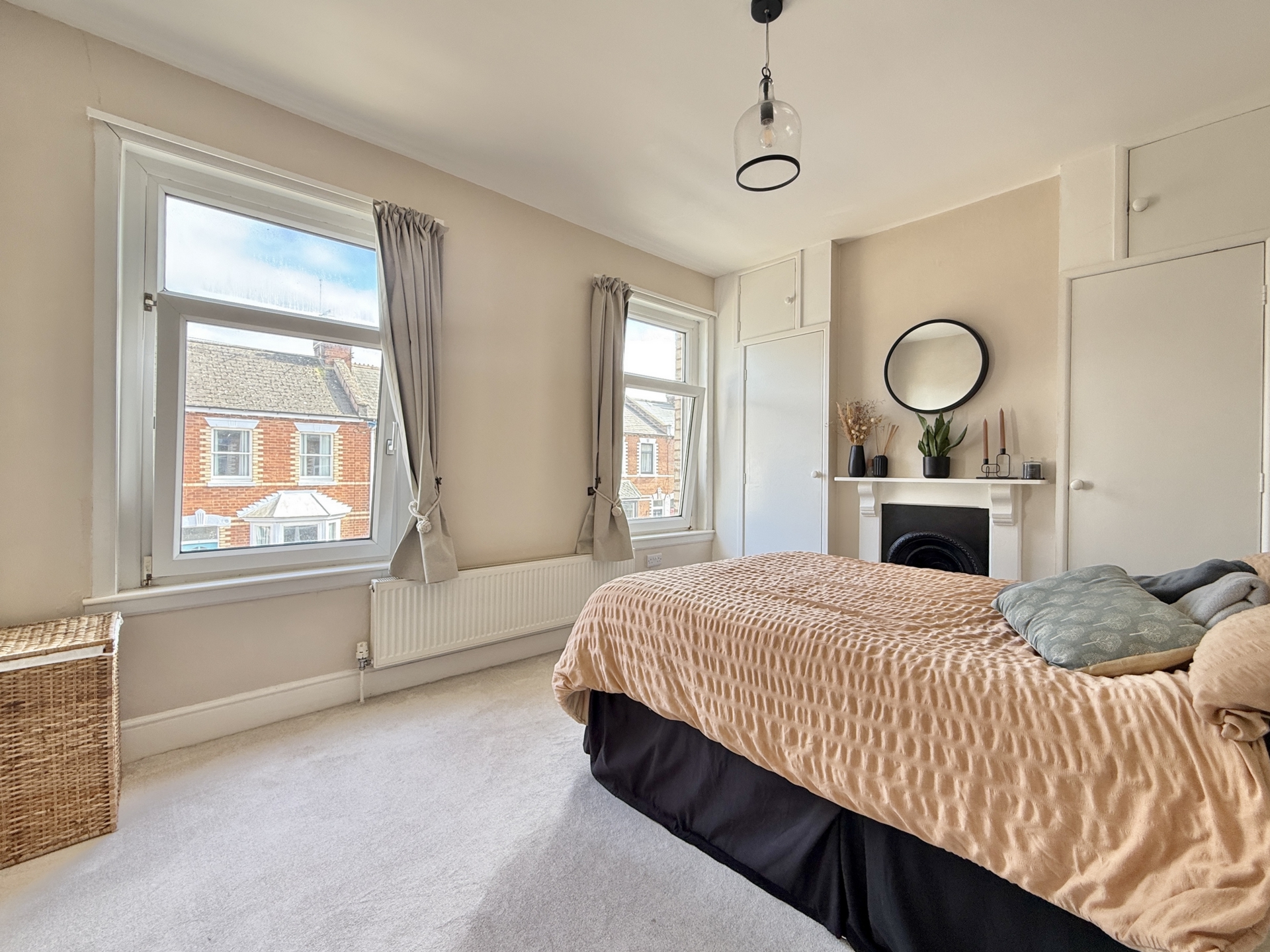BEDROOM 1: 3.9m x 3.2m (12'10" x 10'6"), Double glazed windows to the front, radiator, attractive fireplace.