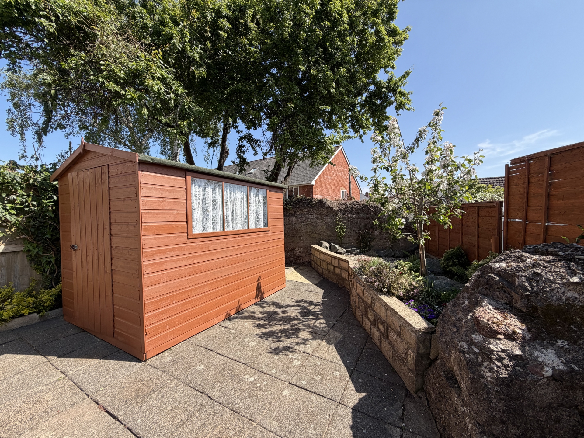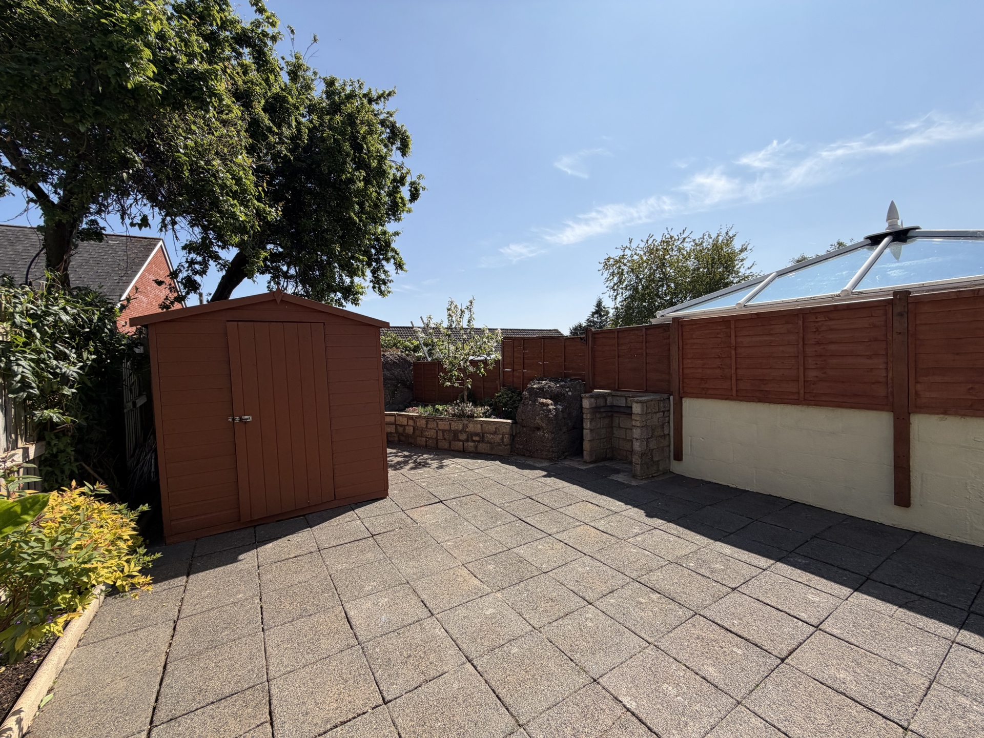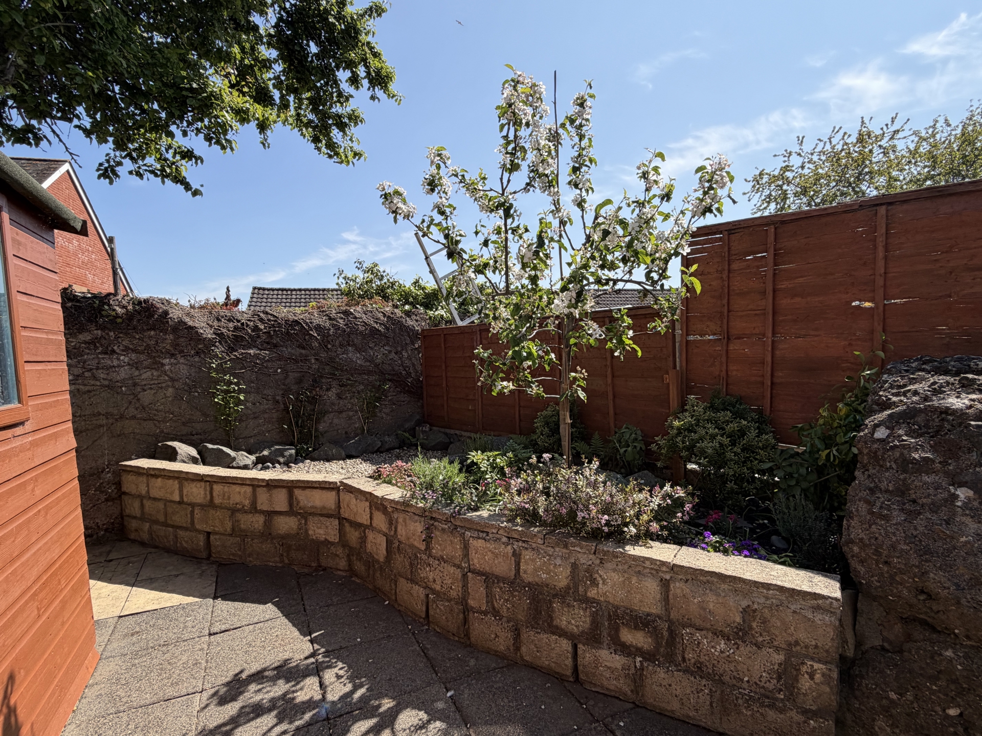 OUTSIDE: To the front of the property is an area of stone chippings with pathway leading tot he front door and gate providing access to the rear which is laid to patio with well stocked flowerbeds and handy timber storage shed.
